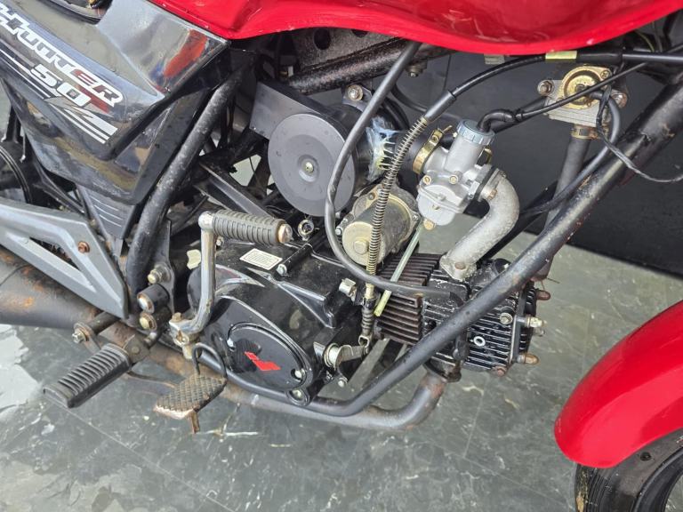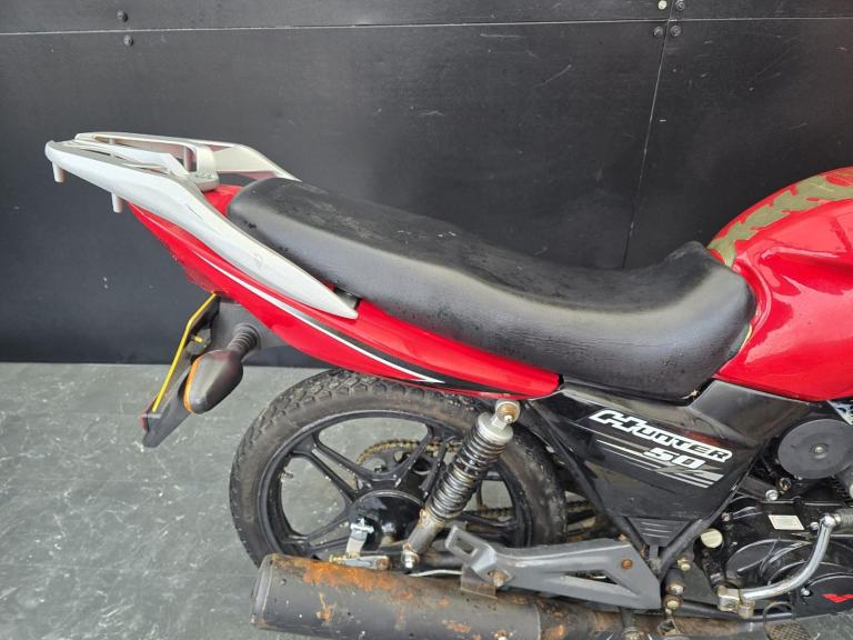 Here we have for sale a Lexmoto Hunter 50 as a project bike in overall not bad condition. We have not had this bike running, there is no power to the clocks. It will turn over on a kickstart. As shown, it is tatty in areas, the exhaust heat shield is missing and there is some marks/corrosion here and there. The MOT expired 13/07/2025. We have the V5 for this bike.