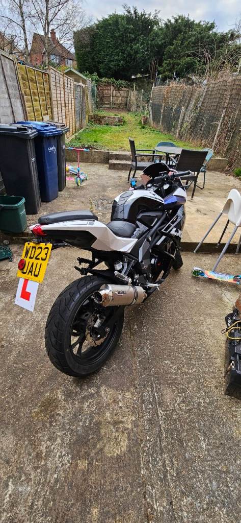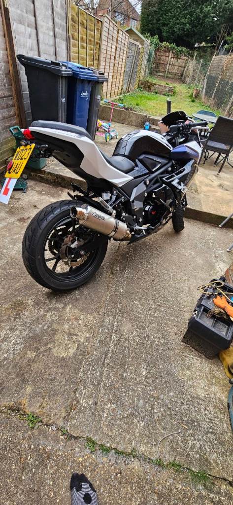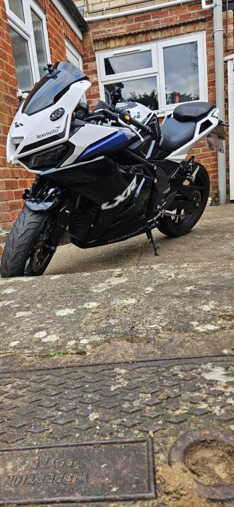 Hello I am selling lexmoto lxr 125 euro 5 black white and blue due to having no use for it due to the fact i drive the bike has done me well never broken down on me never had a issue I am the only owner from brandnew from dealer ship it has had every single service every 3000 to 4000 miles it will need new chain and spocket soon as i never change just one i do all 3 together.. it not long just had a new steering head done not long had front tire which is michelin brand not ling just had a water pump and new radiator as the radiator somehow got a tiny hole in the corner so I just got lexmoto mechanic to replace the radiator and replace the water pump at same time the side panels bolt holes have cracked on parts of side panels where the bolts been done up to tights but this doesnt affect the bike at call they are still locked onto the bike they aint loose it also had tinted front visor have clear stock ones aswell and other brandnew parts like indicator relay and couple other things also has a lextek op1 one the bike also have the stock system aswell brandnew was taken off day i got it and replaced with aftermarket also have a gr moto slip on aswell and a sc project slip on which all these exhaust and end cans will be sold with the bike i do believe it has a couple months left on mot but shouldn't think it wouldn't pass a mot i can always put it through a mot but would mean i will higher the prices also i have two helmets that can come with the bike or i can sell separately need any other info just ask ill let you know.. 1000