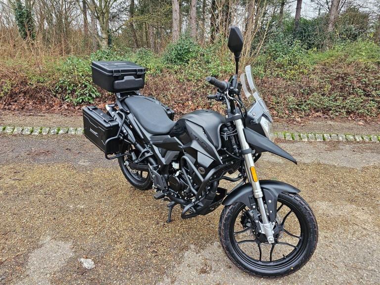 Discover the Lexmoto RX1 125cc, an adventure-style motorcycle built for riders who want versatility and freedom on the road. Designed to handle both urban commutes and weekend getaways, the RX1 combines rugged performance with practical features, making it the ultimate vehicle for any journey. Equipped with a water cooled 125cc engine, the RX1 offers a smooth and efficient ride, whether you`re navigating city streets or taking on scenic backroads. Its durable frame ensures easy handling, while the adventure-style design exudes a sense of boldness and capability. One of the standout features of the RX1 is its impressive 42 liters of removeable luggage fitted as standard, giving you ample storage space to carry everything you need for your adventures. Whether it`s gear for a weekend trip or essentials for your daily commute, the RX1 is ready to accommodate.