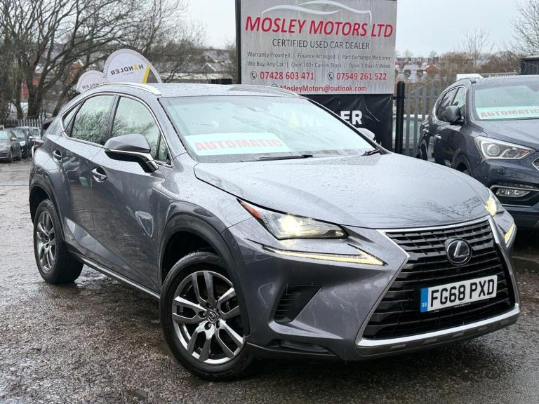 TOP SPEC,mot till December 2026.This 2018 Lexus NX 300h SE offers a refined driving experience with its advanced 2.5 litre petrol hybrid engine, meeting Euro 6 emission standards. This automatic transmission model boasts a comfortable interior featuring dual zone climate control with S Flow, ensuring a pleasant cabin temperature for all occupants. For your convenience and safety, it includes Bluetooth mobile phone connectivity, adaptive cruise control as part of the Lexus Safety System Plus, and LED headlights with auto high beam functionality.The NX 300h SE is designed for practicality and efficiency, offering a generous boot space for all your needs and a low insurance group rating, making it an economical choice. Its smooth acceleration reaches 0-62mph in 9.2 seconds, demonstrating a balanced performance that is better than many similar vehicles. Heated front seats add an extra layer of comfort, particularly during colder months, further enhancing the appeal of this well equipped Lexus.