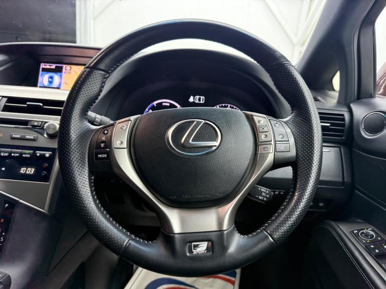 Low finance options available 1 Former Keeper FULL Service History MOT EXP 10/2026Hybrid 4WD Automatic CVT 8” HDD Navigation Head-Up Display Bluetooth USB & AUX DAB Radio 12-Speaker Audio Heated Front Seats Dual-Zone Climate Control LED Daytime Running Lights Bi-Xenon Headlights with AFS & Washers Auto Lights & Rain-Sensing Wipers Electric Windows Front & Rear Power-Fold Heated Mirrors with Memory Power Keyless Entry & Start F Sport Styling F Sport Suspension 19” F Sport Alloy Wheels Leather Steering Wheel & Gear Lever ISOFIX 40/20/40 Split Rear SeatsCruise Control Hill Assist Tyre Pressure Monitoring Privacy Glass Lexus Build Quality & Smooth V6 Hybrid Performance