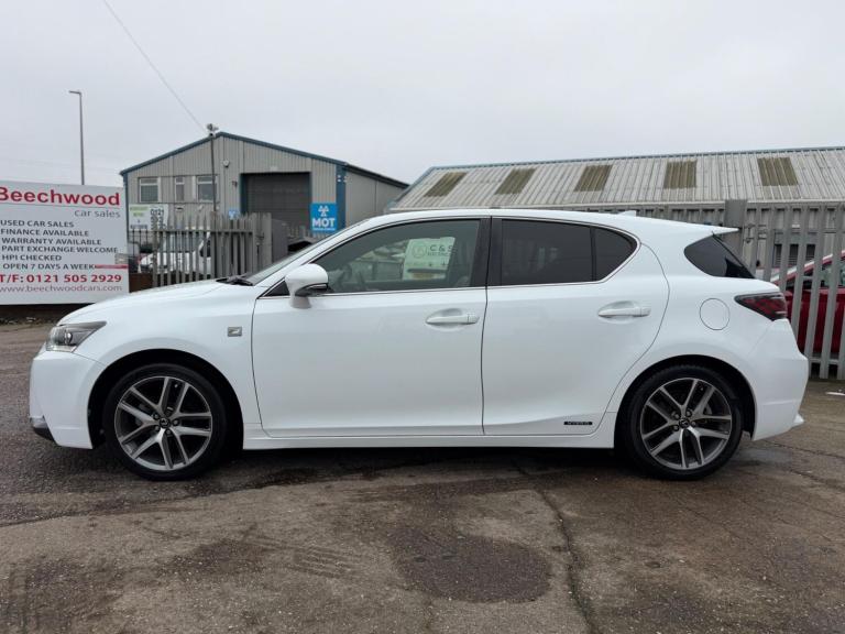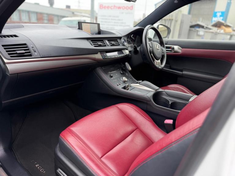 Beechwood Car Sales are delighted to offer you this lovely Lexus CT200h F Sport. Best combination White with Red leather!!! These dont come up for sale very often and this particaular car has been well looked after with only 2 lady owners from new, 2 keys and Full Service History. Being the F Sport model this is fully loaded with Sat Nav, Dab Radio, Reverse Camera, Electric with memory Heated Leather Seats, Folding mirrors, Cruise Control and much more.. Call now to reserve this car. Awaiting prep.All vehicles undergo a comprehensive mechanical inspection and professional valet, ensuring you can drive away the same day with complete peace of mind. We offer nationwide comprehensive warranties ranging from 3 to 24 months. Additionally, all our vehicles are HPI checked and clear, guaranteeing no outstanding finance, theft, or insurance write-offs.We provide flexible finance options and accept part exchanges. All major debit and credit cards are accepted. Driveaway insurance and delivery services are available (terms apply).Note: Specification data is provided by CAP HPI. Beechwood Car Sales LTD is not liable for any errors or omissions in this data or for any related loss. We do not guarantee that the original specification equipment listed remains fitted to the vehicle.