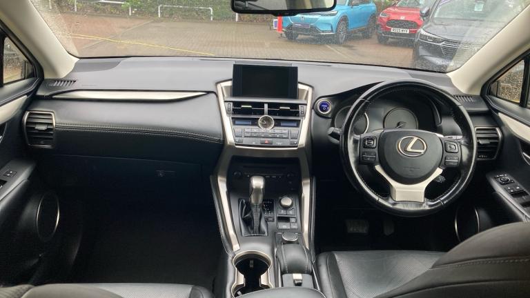 The Lexus NX 300h Luxury is a refined, self-charging hybrid SUV designed for drivers who prioritise comfort and build quality over aggressive performance. Powered by a 2.5-litre Atkinson-cycle petrol engine paired with an electric motor, it delivers a combined 195 hp through a smooth E-CVT automatic transmission. The Luxury trim distinguishes itself with premium upgrades, including perforated leather upholstery, heated and ventilated front seats while its angular, terminator-like exterior makes a bold statement, the interior remains a serene sanctuary with high-quality materials and advanced tech like the Lexus Safety System+. Ideal for urban commuting, its hybrid system excels in stop-start traffic, offering near-silent EV-only running at low speeds. Despite its compact footprint, it remains practical with a 475-litre boot and standard E-Four all-wheel drive on most models..Climate Control, Metallic Paint, Cruise Control, Alloy Wheels, Leather Seats, Heated Seats, DAB Radio, Bluetooth, Parking Sensors, Full Service History, CD Player, Electric Seats, Keyless Entry-Push Button Start, Rear Camera, Auto Lights, Rain Sensors& 4x4, Rear wiper, ABS, Vehicle Stability Control (VSC), Bluetooth telephone connectivity, PAS, Push button starter, Trip computer, Electric/heated/folding door mirrors, Silver interior trim, 8 speakers, Roof rails, LED daytime running lights, Dual climate control air conditioning system, Leather upholstery, LED interior illumination, Active front headrests, Heated front seats, Alarm, Sliding sunvisors with illuminated vanity mirrors, Space saver spare wheel