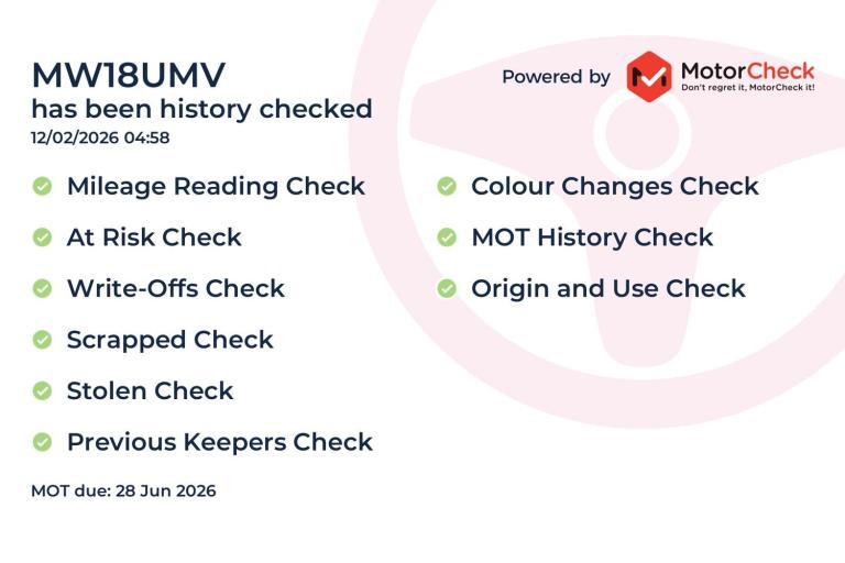 Our vehicle history check is provided for guidance only. Please check all the details with the seller before purchasing