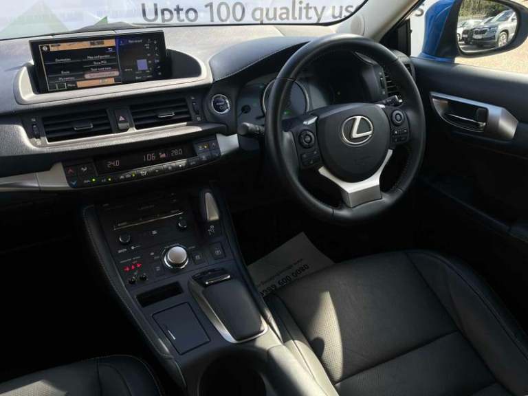 2x USB Sockets, AUX Socket with VTR Compatibility, Bluetooth Mobile Phone Connectivity, DAB Radio, Lexus Media Display, Lexus Navigation, Driving Modes - Normal - EV - Eco - Sport, Parking Sensors - 2x Front and 4x Rear, Reversing Camera, TPWS - Tyre Pressure Warning System, 17in Alloy Wheels, Front and Rear One-Touch Automatic Power Windows with Jam Protection, Heated and Electrically Folding Outside Mirrors with Turn Indicators and Puddle Light, Locking Wheel Nuts, Rear Privacy Glass, Rear Spoiler, Scuff Plates - Black, Space Saver Spare Wheel, Daytime Running Lights - LED, Halogen Headlights with Automatic High Beam - AHB, LED Brake Lights and Rear Lights with Emergency Brake Signal, LED Front Fog Lights, 2x Coat Hooks in Rear, 2x Cup Holders in Centre Console, 2x Map Pockets in Rear of Front Seats, 2x Sun Visors with Vanity Mirror and Lamp, 4x Tie Down Hooks in Boot, Armrest - Front Centre with Storage, Card Holder in Drivers Sun Visor, Drive Mode Select System, Driver and Passenger Door Pocket, Dual Zone Climate Control Air Conditioning System, Inlays - Black, Manually Adjustable Leather Steering Wheel, Plus Pack, Push Start Button, Rain Sensitive Windscreen Wipers, Seats - 60-40 Split Folding Rear, Seats - Driver 6-Way Manual Adjustment, Seats - Front Heated, Seats - Passenger 4-Way Manual Adjustment, Storage Tray Under Deck Board in Boot, Textile Carpet Mats, EPS - Electric Power Steering - Speed Sensitive, [Safety and Security]ABS - Anti-Lock Braking System, Anti Theft