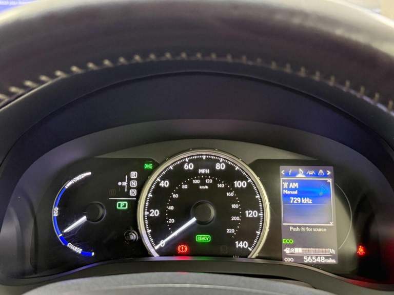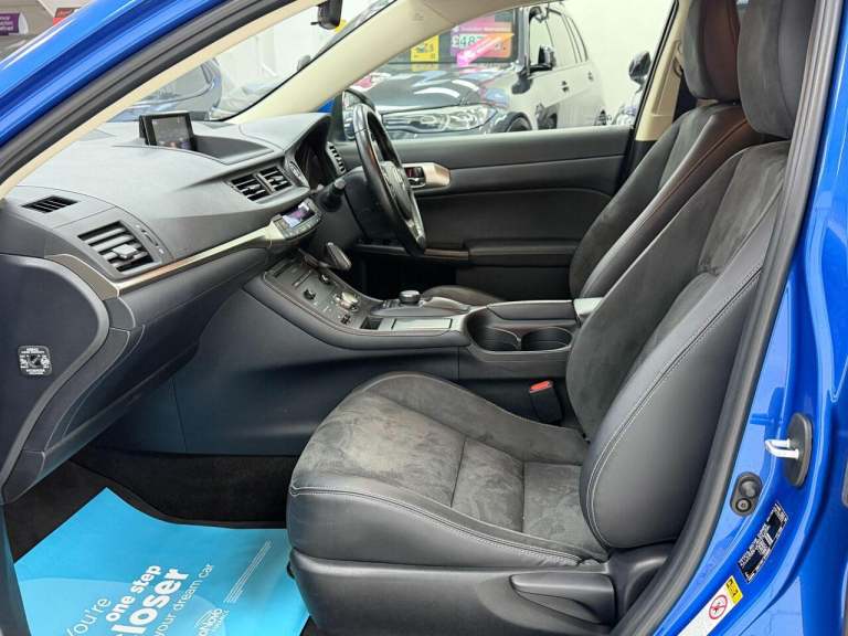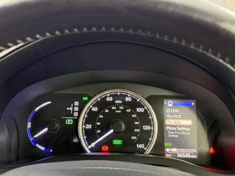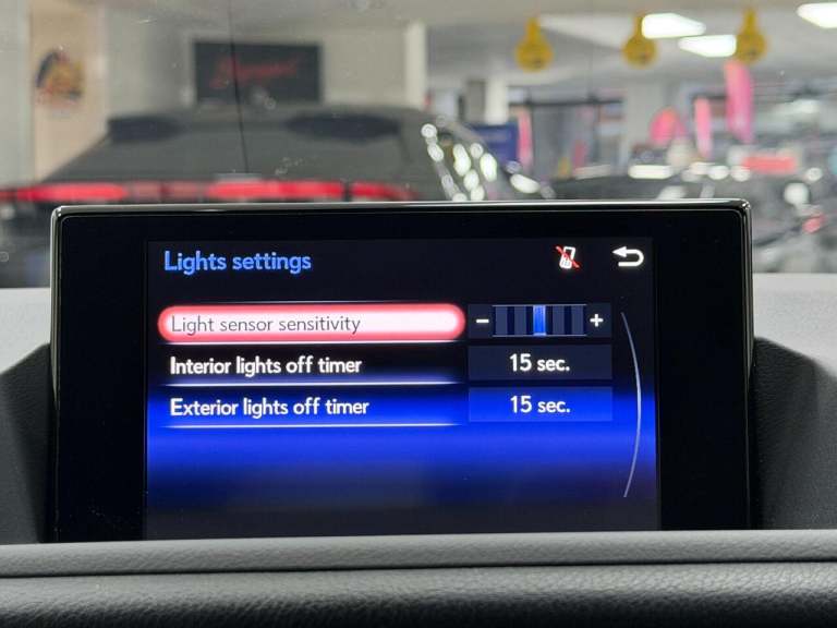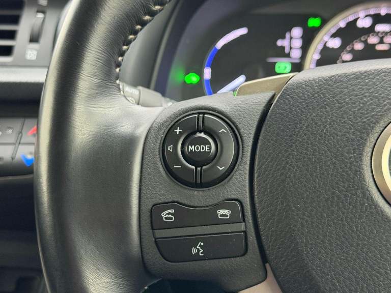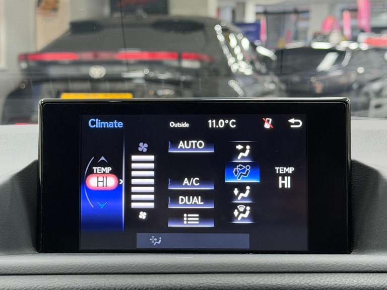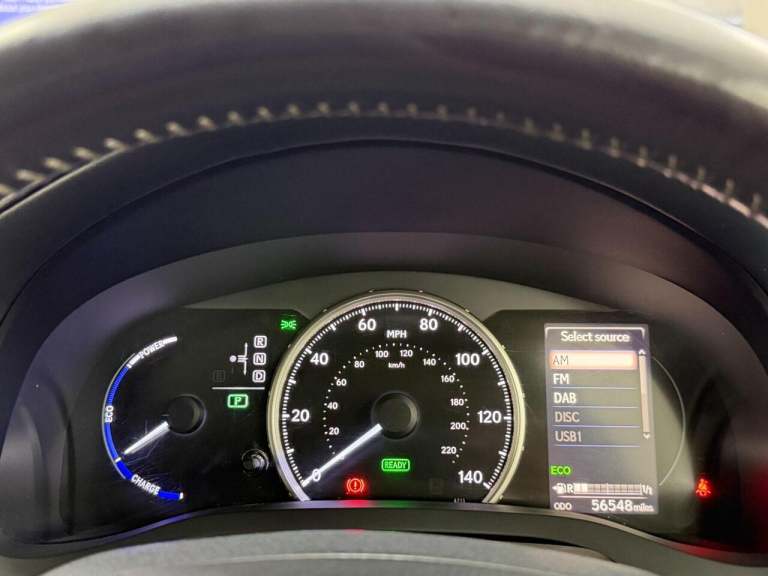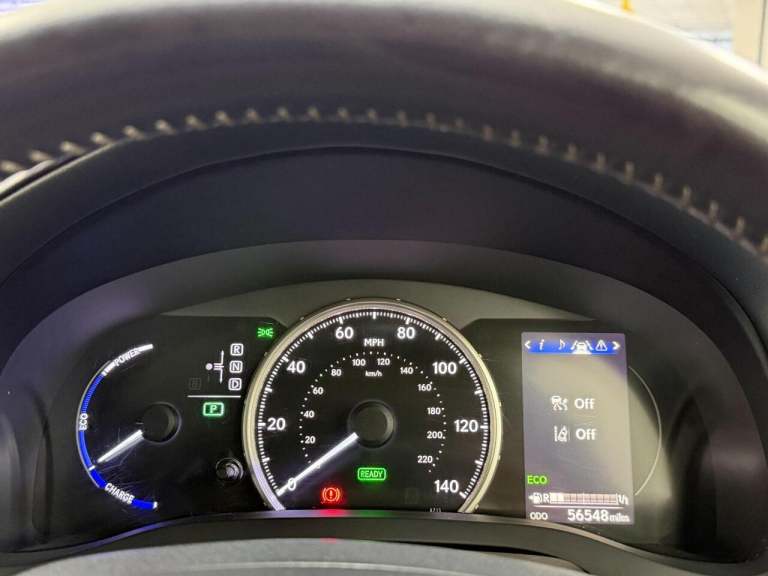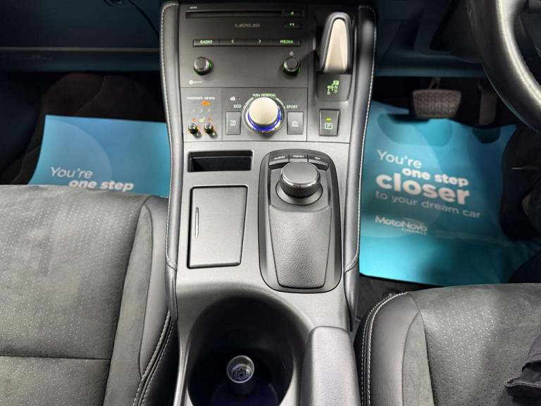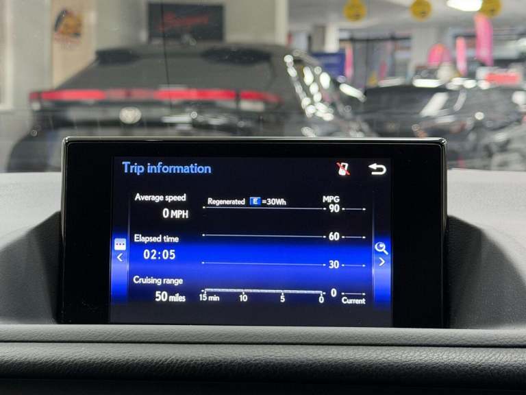 17in Alloy Wheels, 2x Coat Hooks in Rear, 2x Cup Holders in Centre Console, 2x Map Pockets in Rear of Front Seats, 2x Sun Visors with Vanity Mirror and Lamp, 2x USB Sockets, 4x Tie Down Hooks in Boot, ABS - Anti-Lock Braking System, AUX Socket with VTR Compatibility, Anti Theft System Alarm, Armrest - Front Centre with Storage, Autonomous Emergency Braking, BAS - Brake Assist System, Bluetooth Mobile Phone Connectivity, Card Holder in Drivers Sun Visor, Curtain Shield Airbags - Front and Rear, DAB Radio, Daytime Running Lights - LED, Drive Mode Select System, Driver and Front Passenger 2-Stage Airbags, Driver and Front Passenger Knee Airbags, Driver and Front Passenger Side Airbags, Driver and Passenger Door Pocket, Driving Modes - Normal - EV - Eco - Sport, Dual Zone Climate Control Air Conditioning System, EBD - Electronic Brakeforce Distribution, ECB - Electronically Controlled Braking, EPS - Electric Power Steering - Speed Sensitive, Front Glove Box with Lock, Front Seat Belts with Pre-Tensioners - 3 Point ELR - Emergency Locking Retractor, Front and Rear One-Touch Automatic Power Windows with Jam Protection, Halogen Headlights with Automatic High Beam - AHB, Heated and Electrically Folding Outside Mirrors with Turn Indicators and Puddle Light, Hill Assist Control 3, ISOFIX Child Restraint System - Rear x2, Inlays - Black, LED Brake Lights and Rear Lights with Emergency Brake Signal, LED Front Fog Lights, Lexus Media Display, Lexus Navigation, Lexus Safety System Plus, Locking Wheel Nuts, Manually Adjustable Leather Steering Wheel, Parking Sensors - 2x Front and 4x Rear, Passenger Airbag Cut Off Switch, Plus Pack, Push Start Button, Rain Sensitive Windscreen Wipers, Rear Privacy Glass, Rear Spoiler, Reversing Camera, Scuff Plates - Black, Seats - 60-40 Split Folding Rear, Seats - Driver 6-Way Manual Adjustment, Seats - Front Heated, Seats - Passenger 4-Way Manual Adjustment, Smart and Easy Entry, Space Saver Spare Wheel, Storage Tray Under Deck Board in Boot, Sunglasses Holder, TPWS - Tyre Pressure Warning System, TRC - Traction Control System, Textile Carpet Mats, Two Motion Door Lock - Double Lock, VDIM - Vehicle Dynamics Integrated Management, VSC - Vehicle Stability Control, WIL - Whiplash Injury Lessening Front Seats, Window Etching