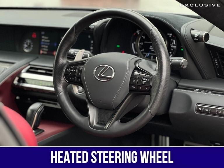 We are delighted to present this absolutely beautiful Lexus LC500 Sport Plus V8, benefitting from full Lexus service history and lovely specification including 21"" alloys, Mark Levinson sound system, heads up display, carbon fibre roof, adaptive cruise control, blind spot monitoring, sonic titanium silver complemented with Rose red leather and much more. ---|---For further peace of mind, this car also benefits from Lexus relaxed warranty, for cars up to 10 years of age or 100,000 mileage.---|--- This Lexus had a service in June 2025 and the relaxed warranty has been extended until June 2026. It has also recently had a health check by Lexus with a clean bit of health. ---|--- This striking coupe is powered by a potent 5.0L petrol engine which produces a sonorous sound from its exhausts that amplifies the exhilarating experience from driving this incredible car---|---Inside, you'll find a wealth of premium features designed to enhance your driving experience, including a Colour Head Up Display, a sophisticated Mark Levinson sound system with 13 speakers, and seamless Bluetooth mobile phone connectivity. The Bi-LED headlights offer an Auto High Beam System and Follow Me Home Function, while the Lexus Premium Navigation system incorporates a rear-view parking camera for added convenience.---|---The performance of this Lexus LC 500 Sport is truly impressive, with a rapid 0-60mph acceleration time of just 4.4 seconds. This swift acceleration, combined with its advanced features, positions this vehicle as a superior choice compared to other similar models on the market. The meticulous care evident in its full dealership service history and low mileage further underscore its outstanding condition and desirability.---|---With the LC500 now discontinued, it has been become a sought after vehicle and becoming rarer to find a cherished example.---|--- VEHICLE INFORMATION ---Exterior and Interior Condition - Excellent --- Tyre Condition - Excellent --- Full Lexus Service History Last serviced by Lexus on 17/06/2025 @ 27,910 miles --- Lexus Relaxed Warranty until June 2026 ---