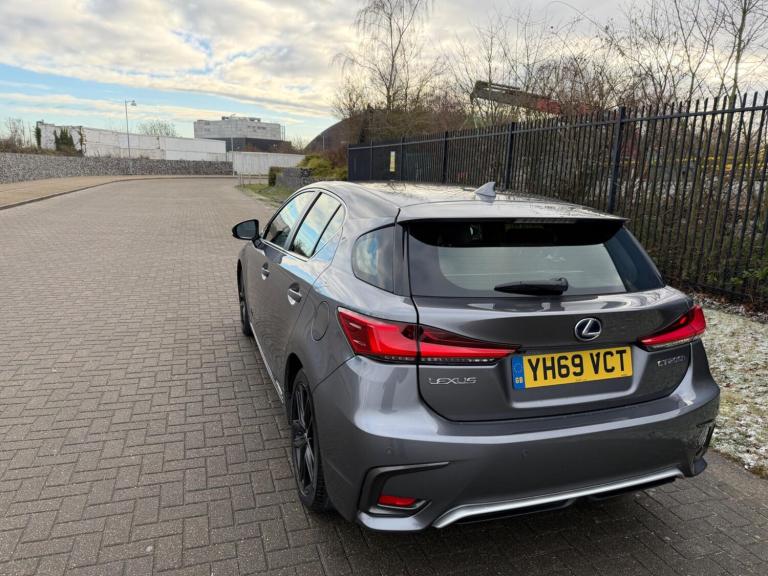 FSH, HPI CLR, ULEZ, 1 PREVIOUS OWNER, GENUINE WARRANTED MILEAGE,This 2019 Lexus CT 200h offers an exceptional blend of efficiency and advanced technology, making it a smart choice for the discerning driver. Powered by a 1.8L petrol hybrid engine and meeting Euro 6 emissions standards, this model is designed for economical running. It comes equipped with the comprehensive Lexus Safety System Plus, including adaptive cruise control for relaxed journeys. Comfort is assured with dual zone climate control air conditioning, and parking is made simpler with a reversing camera and rear parking sensors. Stay connected on the go with seamless Bluetooth mobile phone connectivity.The Lexus CT 200h stands out with its remarkably low CO2 emissions, indicating a more environmentally friendly performance compared to many other vehicles in its class. Furthermore, its generous boot space provides ample room for shopping or luggage, a practical advantage for everyday use. This vehicle also benefits from a low insurance group, which can contribute to lower running costs. These highlights collectively demonstrate the CT 200h's superior value and practicality.