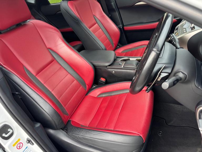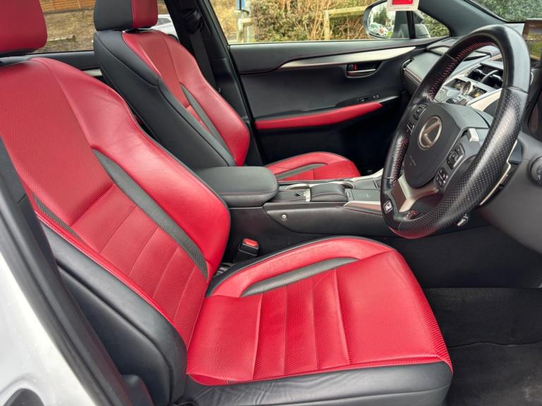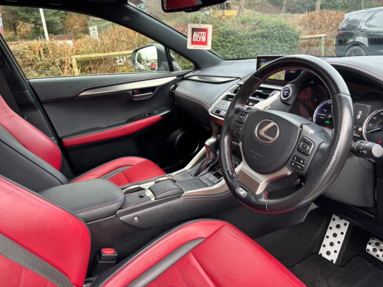 WE ARE PLEASED TO OFFER THIS HIGHLY DESIRABLE HIGH SPECIFICATION MAIN DEALER MAINTAINED RARE LOW MILEAGE LOW OWNERSHIP PETROL / HYBRID EURO SIX AUTOMATIC LEXUS NX 2.5 300h F SPORT E-CVT FOUR WHEEL DRIVE FIVE DOOR + FINISHED IN THE BEST COLOUR OF ULTRA WHITE PEARL METALLIC AND IS COMPLEMENTED WITH A FULL RED F-SPORT LEATHER UPHOLSTERY WITH BLACK LEATHER INSERTS + ONLY 36,260 MILES HAS BEEN COVERED IN TOTAL BY TWO OWNERS + LAST RETIRED OWNER SINCE APRIL 2024 AND IS BACKED WITH AN OUTSTANDING LEXUS MAIN DEALER SERVICE HISTORY + LAST SERVICED AT 35,925 MILES BY LEXUS CHESTER ON THE 10TH OF DECEMBER 2025 AT 35925 MILES + THIS SERVICE ALSO INCLUDED THE SUCCESSFULLY PASSED ANNUAL LEXUS HYBRID HEALTH CHECK + EXCEPTIONAL CONDITION THROUGHOUT AND DRIVES SUPERB + 197 BHP MODEL + FULL F-SPORT SPECIFICATION WHICH INCLUDES A PANORAMIC GLASS SUNROOF / SATELLITE NAVIGATION / DAB TUNER / HEATED FRONT SEATS AND STEERING WHEEL / PREMIUM PACKAGE / FULL ELECTRIC PACK WITH POWER ADJUSTABLE FRONT SEATS, STEERING COLUMN AND POWER FOLD DOOR MIRRORS / CRUISE CONTROL / MEDIA PACK / MULTI FUNCTION LEATHER F-SPORT STEERING WHEEL / 18'' TWO TONE MULTI SPOKE ALLOY WHEELS / PRIVACY GLASS / POWER TAILGATE PLUS MUCH MORE + HANDBOOK PACK + DIGITAL PRINTOUT SERVICE HISTORY + 2 X KEYS + ANY TRIAL OR INSPECTION IS WELCOMED + HPI CLEAR WITH CERTIFICATE + SIX MONTHS NATIONWIDE WARRANTY IS INCLUDED + LEXUS BUILD QUALITY + THIS TRULY CHERISHED EXAMPLE MUST BE VIEWED TO BE APPRECIATED AND MUST NOT BE CONFUSED WITH LESSER EXAMPLES AVAILABLE. We have been established in Baildon for over 20 years. All our vehicles are fully inspected, prepared and valeted. We are finance specialists. Part exchange is welcome. All major credit and debits accepted. Open 7 days. Our postcode is BD177EX.
