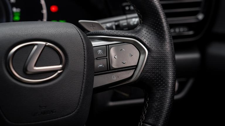 ..360 degree panoramic view monitor,5 Driving modes EV/Normal/Eco/Sport/Sport S+,7'' display in instrument binnacle,Blind spot monitoring with rear cross traffic alert,Bluetooth telephone connectivity,eCall emergency system,Electric speed sensitive power steering,Head up Display,Intelligent parking sensors - 4 front and 4 rear,Lane change flasher function,Lexus link connect - Cloud based navigation, cloud based voice assistant, always online, 14'' HD touchscreen, embedded nav and faster CPU,Push button starter,Reversing camera with back guidelines,Service interval indicator,Tazuna cockpit with 7'' improved meters display, 10'' HUD and capacitive touch steering wheel switches,Wireless Apple CarPlay and wired Android Auto,Wireless Smartphone charger,6.6 kW onboard charger,All Wheel Drive (AWD),AVS - Adaptive variable suspension,Hybrid automatic transmission,Sports suspension with lateral performance dampers,Vehicle Dynamics Integrated Management (VDIM),Vehicle Stability Control (VSC),10 speakers,4 USB ports - 2 front, one USB C, 2 rear USB C,DAB Digital radio,4 eye LED headlight with adaptive high beam,Auto dimming interior rear view mirror,Automatic headlights,Black roof rails,Double hidden exhaust pipes,F SPORT exterior styling - Black mesh front grille, enhanced side rockers, metallic front bumper, badging, black outside mirror covers,Front and rear one touch power windows, with anti-jam protection,Headlight cleaners,Heated, auto-folding, auto-dimming outside mirrors with reverse tilt function and turn indicators,Illuminated door handles with puddle light,LED brake lights and rear lights with emergency brake signal,LED cornering lights,LED daytime running lights,LED front fog lights,LED Indicators,Power back door with kick sensor,Privacy glass, rear doors and tailgate,Rain sensor windscreen wipers,Rear side wing doors,Rear wiper,12V accessory port centre console and luggage compartment,2 cupholders in front centre console,2 way electrical lumbar adjustment for driver,2 x fixed shopping bag hooks in boot,2 x sun visors with vanity mirror and lamp,3 seat bench in 2nd row,4 x tie down hooks in the boot,60/40 split folding rear seat,8 way driver/passenger electrically adjustable front seats,Adjustable rear seat backrest,Card holder installed in driver and passengers sun visors,Centre armrest with storage box,Driver seat memory function,Dual zone climate control air conditioning system with humidity sensor,F Sport aluminium sports pedals,F SPORT leather