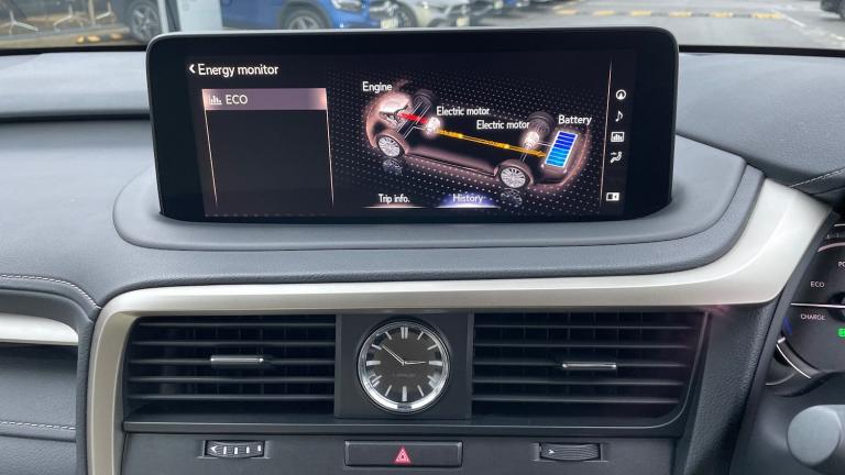 This 2022 Lexus RX 450h offers a compelling blend of efficiency and performance, boasting a 3.5L petrol hybrid engine and Four Wheel Drive capability. As a Euro 6 compliant vehicle, it meets stringent emission standards. Inside, you'll find a host of convenient features designed to enhance your driving experience, including Smart Keyless Entry for effortless access, and a Dual Zone Climate Control Air Conditioning System with S Flow and Nanoe Technology to maintain perfect cabin comfort. Parking is made simpler with a Reversing Camera featuring Back Guide Lines, and staying connected is easy thanks to Bluetooth Mobile Phone Connectivity and a Wireless Smartphone Charger.The Lexus RX 450h stands out with its impressive acceleration, reaching 0-62mph in just 7.7 seconds, demonstrating its dynamic performance. This model also benefits from a low insurance group, making it a more economical choice to own. Furthermore, you'll appreciate the generous boot space, offering ample room for luggage or shopping. These highlights collectively indicate that this Lexus RX 450h provides a superior ownership proposition compared to other vehicles in its class.