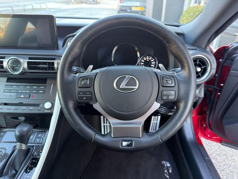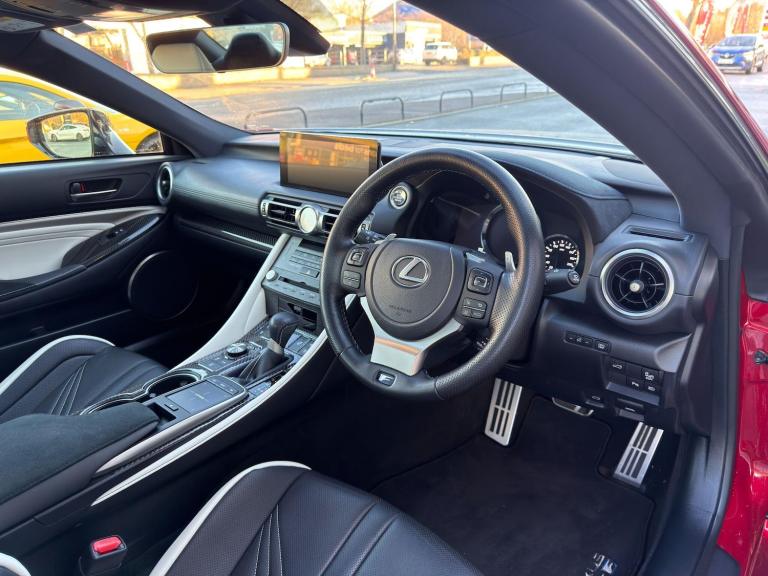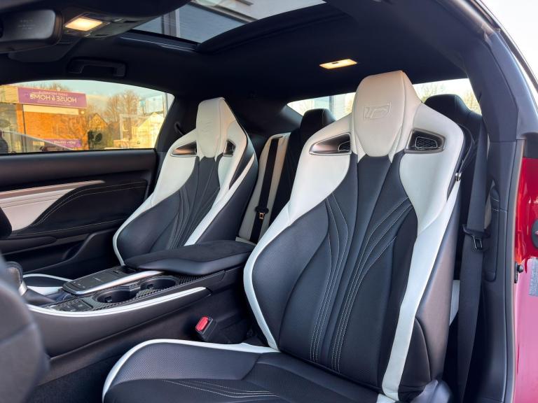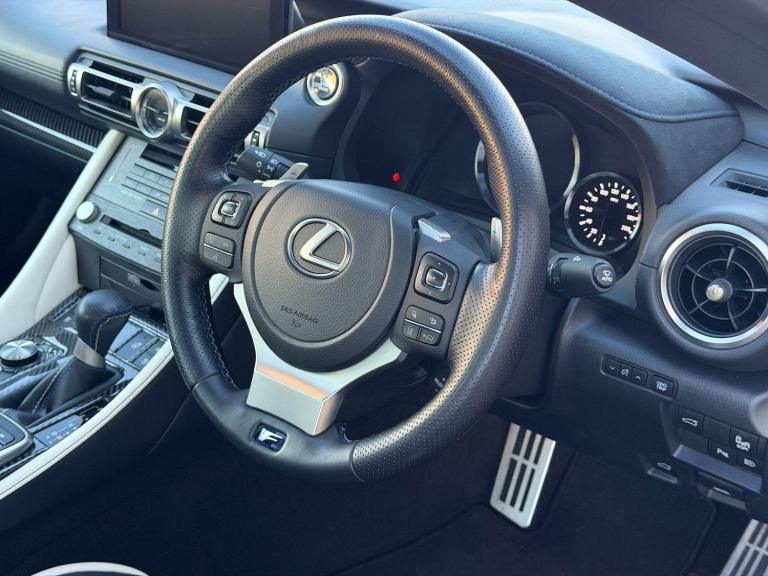 5.0 V8. Modifications: Carbon Fibre Wrapped Bonnet. Factory Options: Tilt and Slide Panoramic Roof, Carbon Fibre Interior Inlays, Semi Aniline Perforated Leather/Cloth Two-tone Black/White Interior. Standard Specification: Reversing Camera, Heated Steering Wheel, Adjustable Spoiler, Electric Front Heated/Ventilated Seats, Driver Memory Seat, 19” Alloys, Smart and Easy Entry, Carbon Fibre Door Sills, Torsen Limited Slip Differential, Apple CarPlay and Android Auto, Bluetooth, DAB Radio, Lexus Premium Navigation System, LED Headlights with Auto High Beam, Blind Spot Monitor System with Rear Cross Traffic Alert, Dual Zone Climate Control, Adaptable Driving Modes, Steering Column Power Adjust with Easy Entry, Hill Assist Control, Illuminated Entry System with LED Lights, Front and Rear Parking Sensors, Orange Brembo Brake Calipers, Analogue Clock, Touch Pad.Finished in Infrared Paint. Lexus Warranty Until 09/2026. Panoramic Roof, Panoramic Glass Roof, Pan Roof, Pano Roof, Panorama Roof, Sunroof, Glass Roof, Panoramic Sunroof. Heated and Ventilated Seats, Climate Seats, Heated and Cooled Seats.All our cars are HPI clear. Please contact us for your own personal video presentation of this particular car. We offer competitive finance rates with our in-house team from PCP, lease purchase and HP. Whilst we make every effort to ensure that the specification and technical information for the cars on our website is correct, some of it is supplied by third party providers and we cannot guarantee its accuracy. It is therefore important that you do not solely rely on this information.
