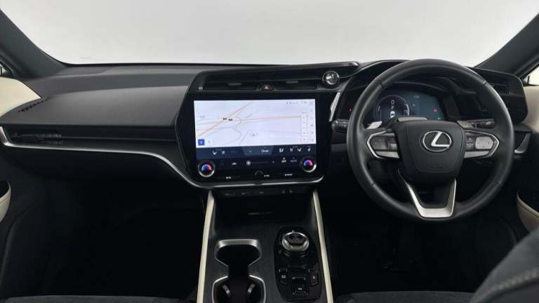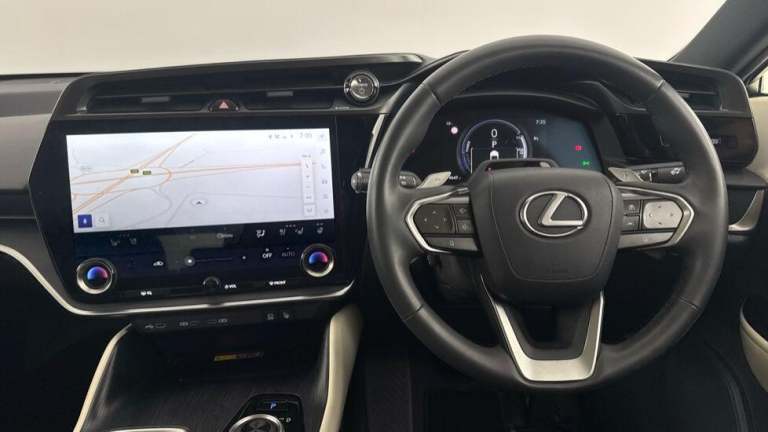 This 2023 Lexus RZ 450e Takumi boasts a full service history with its last service completed on 09 April 2026 at 19,647 miles, which is notably low mileage for its age, and it has had only one owner. This electric vehicle, presented in the Takumi trim, features a Four Wheel Drive drivetrain and a 71 kWh battery offering a maximum range of 251 miles when new. Connectivity is enhanced with Wireless Apple CarPlay and Wired Android Auto, while parking is made easier with a reversing camera. Comfort is a priority, with a heated steering wheel and a fixed, dimmable panoramic roof. The RZ also features single LED headlights for clear visibility.The Lexus RZ 450e Takumi offers an impressive 0-62mph acceleration in just 5.3 seconds, demonstrating its dynamic performance. This acceleration is quicker than many other vehicles in its class, providing a more engaging driving experience. The vehicle also benefits from a large boot space, offering practical storage solutions for everyday needs and longer journeys. With a full charging time of 10 hours 15 minutes at home using a 7kW charger, and the ability to reach 80% charge in just 25 minutes at a rapid public charging station, this electric Lexus RZ is designed for both convenience and efficiency.