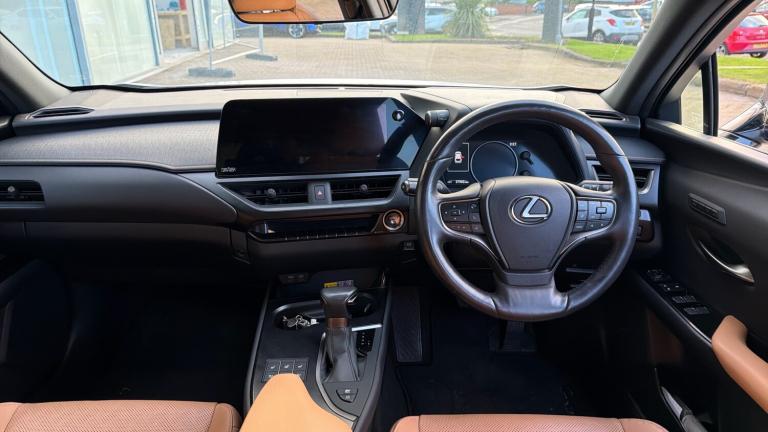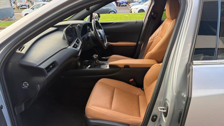 Vertu Toyota Sheffield are delighted to offer this stunning, Lexus UX 250h Takumi 4x2 CVT is a premium compact hybrid SUV that blends refined luxury with efficient performance. Powered by a 2.0-litre self-charging hybrid system delivering 184 hp, it offers smooth, responsive acceleration through an electronically controlled CVT transmission. The Takumi trim represents the pinnacle of craftsmanship, featuring exquisite materials, meticulous attention to detail, and advanced technology throughout the cabin. Inside, you’ll find premium leather upholstery, heated and ventilated seats, a 10.3-inch infotainment display with navigation, and a superb Mark Levinson sound system. The UX 250h’s design combines sharp, sculpted lines with aerodynamic efficiency, ensuring a confident presence on the road. Safety is paramount, with Lexus Safety System+ offering adaptive cruise control, lane-keeping assist, and blind-spot monitoring as standard. Agile handling and impressive comfort make it ideal for both city driving and long journeys. The Lexus UX 250h Takumi perfectly balances luxury, sustainability, and practicality in a stylish hybrid crossover.Available to view at Vertu Toyota Sheffield today All our vehicles are fully inspected by our trained technicians and having passed a full Toyota technical check, including refurbishment, so you can drive away with complete confidence. ROADSIDE ASSISTANCE this vehicle Comes with a complete 12 months full roadside assistance coverage that includes breakdown and recovery service at your home or by the roadside TOYOTA WARRANTY This car is available for immediate delivery and has been selected to be supplied via the Toyota Approved used vehicle program which provides you with at least 12 months complete peace of mind, every used Toyota now also benefits from an additional service activated warranty after the original manufacturer’s warranty has expired. Every time you have the scheduled service carried out at Vertu you benefit from a 12 months/10,000 miles additional warranty*, available for up to 10 years and 100,000 miles..Air Conditioning, Climate Control, Cruise Control, Alloy Wheels, Heated Seats, DAB Radio, Bluetooth, Stop Start, Full Service History, USB, Diamond Cut Alloy Wheels, Adaptive cruise, Keyless Entry-Push Button Start, Apple-Android Play, Rear Camera, Auto Lights, Lane Departure, Lane Keeping Assist, Pre Crash Prevention& Rain Sensors, Rear wiper, Rain sensor windscreen wipers, Acoustic windscreen, Privacy glass, rear doors and tailgate, Front and rear one touch power windows, with anti-jam protection, Variable front intermittent wipers, Hill start assist control (HAC), Anti-lock Braking System (ABS), Electric parking brake, ECB (Electronically Controlled Brake System), BAS (Brake Assist System), EBD - Electronic brakeforce distribution, Secondary Collision Brake (SCB), TRC (Traction Control), Vehicle Stability Control (VSC), Vehicle Dynamics Integrated Management (VDIM), Wireless Smartphone charger, E-call, Apple car play/Android Auto, Lexus link connected services