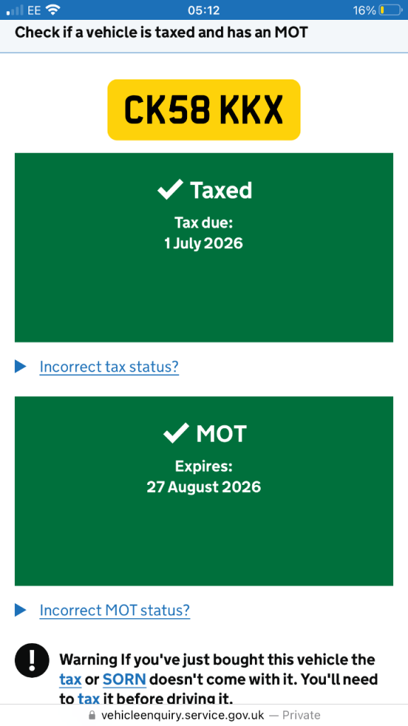This vehicle has not been reported stolen, scrapped, exported or flagged as unroadworthy.