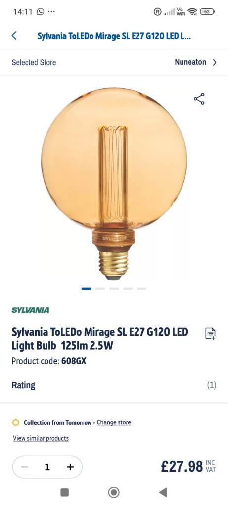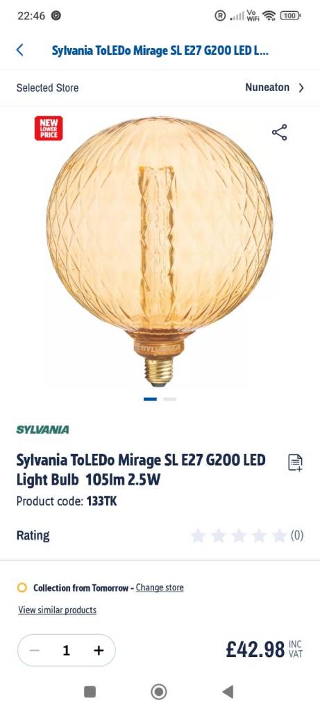 40w light bulb, just tested it and it works. Pick up from south side, edinburgh