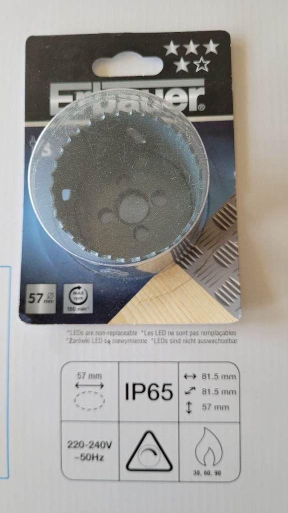 Included is a free 57mm holesaw which is on sale at £8.79 also from Screwfix.