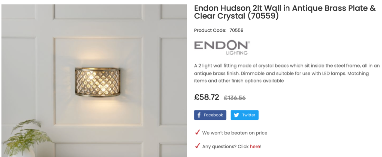 Endon Hudson 2lt Wall in Antique Brass Plate & Clear Crystal - brand new in boxes