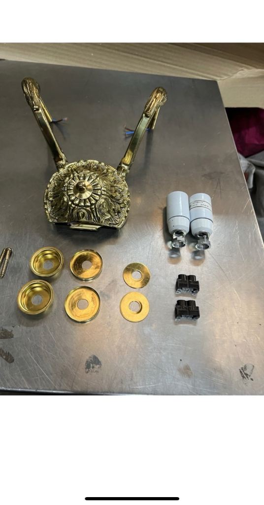 Posting for under a monthBrass Wall Light From Bohemian Crystal Chandelier Twin Arm NOS Leaf Scroll Motif