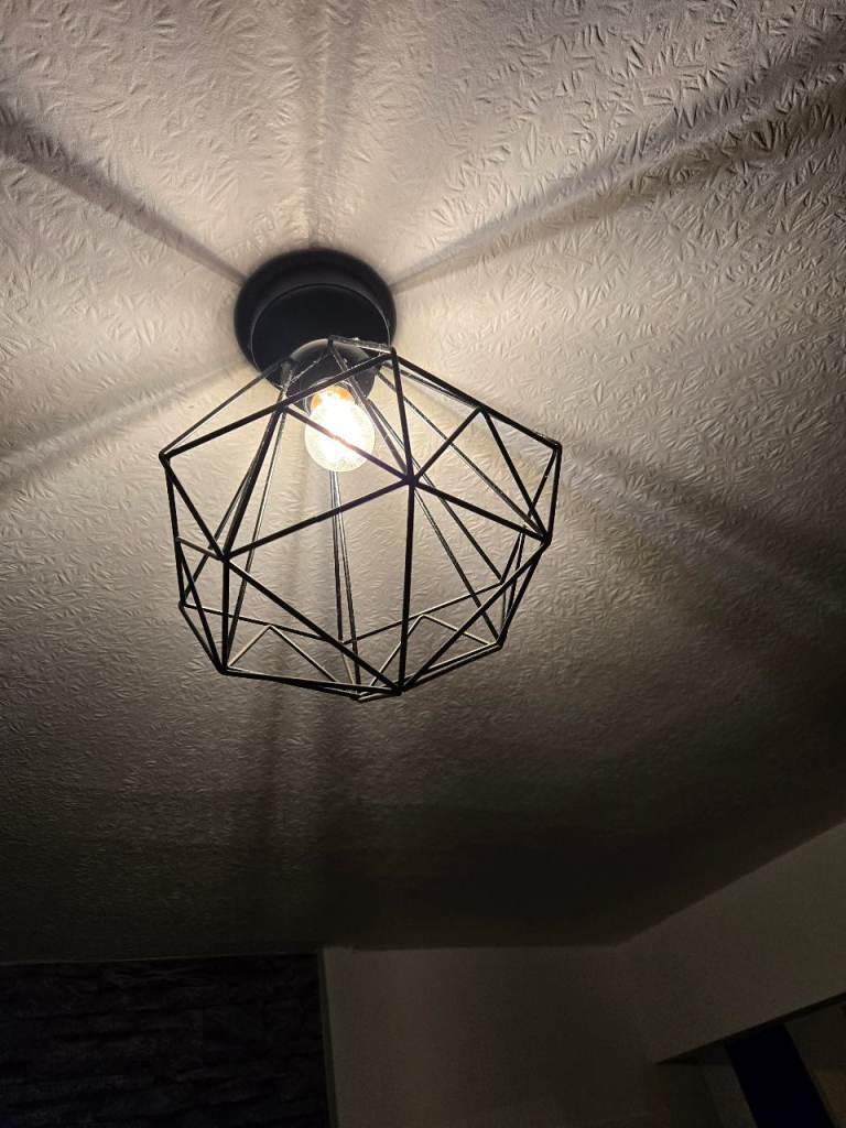 Upgrade your space with this elegant set of two ceiling lights featuring a sleek black metal cage design. Each fixture showcases a geometric wireframe that casts beautiful radial shadows, adding depth and character to any room. Perfect for living rooms, hallways, bedrooms, or feature walls.