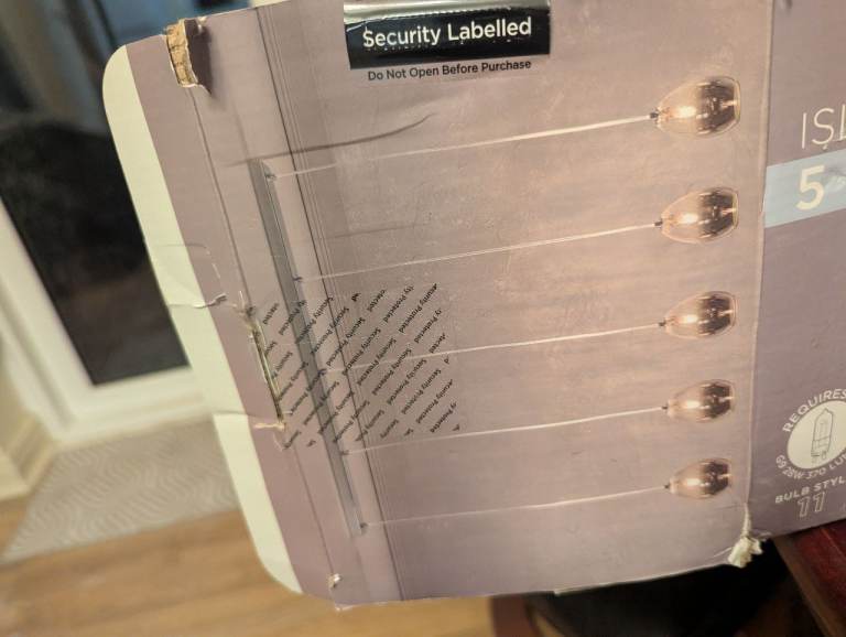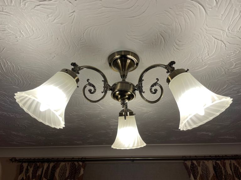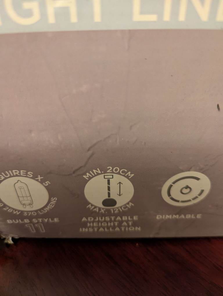 Brand new, still packed in box Next 5 pendant dimmable light. Substantially reduced from original price. Was £99. Will not fit in new kitchen due to beam over island. Dimensions shown on pictures.