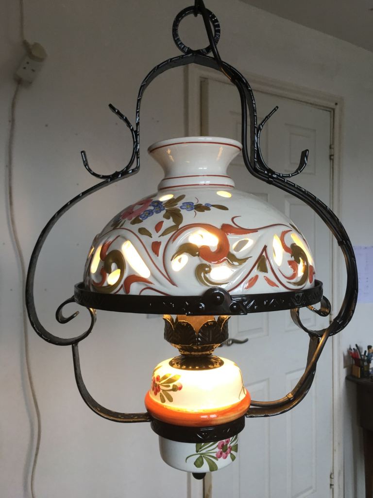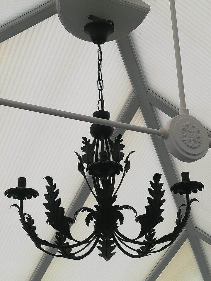 Black metal 5 arm light fitting with leaf design look great in a period property could deliver depending on address