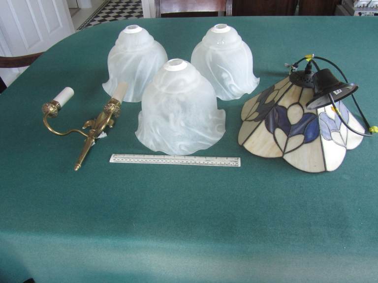 Light fitting with 3 shades in full working order. Safe collection from porch or can deliver locally ONLY.