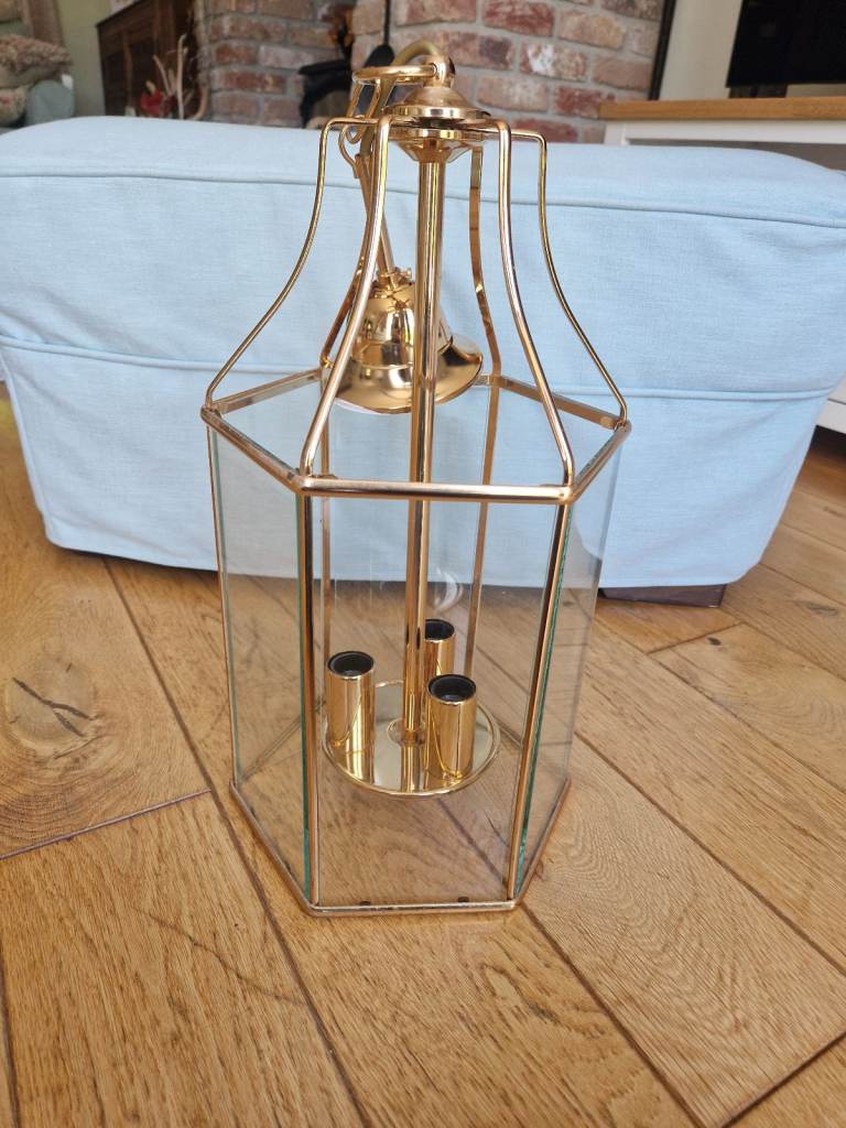 Brass Oil lamp, vintage 1950s 60s,s works well, excellent condition. Glass pattern shade.