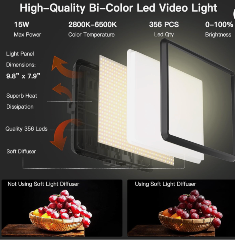 2-Pack Photography Lighting Kit,25 * 20cm LED Studio Video Lights with Tripod