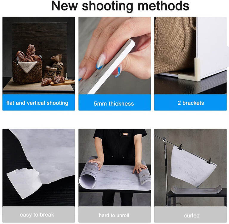 3.Flat lay backdrops, durable, light, non-reflective, non-glare.