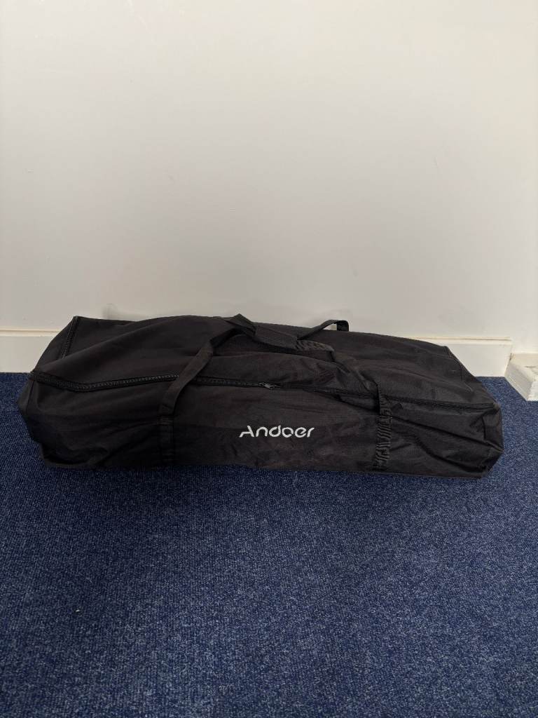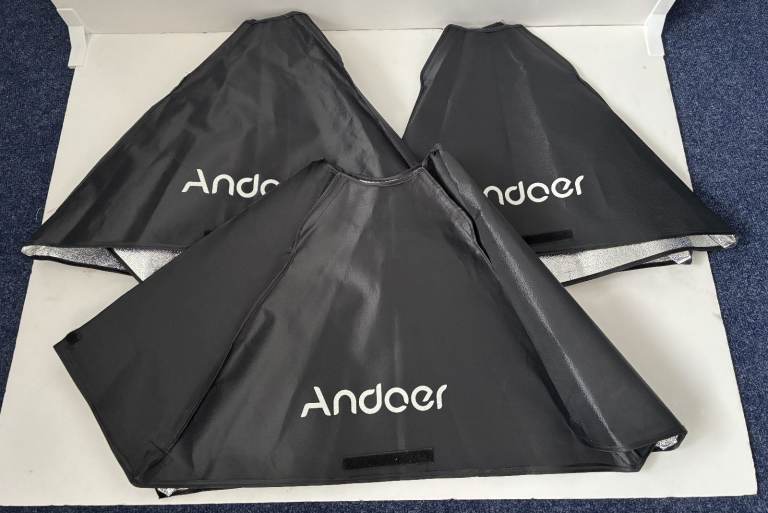 Andoer Softbox Photography Lighting Kit – ideal for photography, video, livestreaming, or studio setups. Comes with 3 softboxes, 3 light stands, a boom arm, and 9 bulbs.