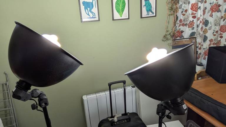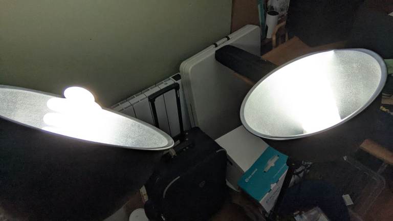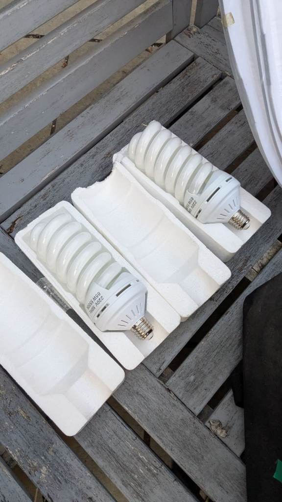 2 lights that are continuously on for a photography studio. Very bright. Includes both the bulbs.
