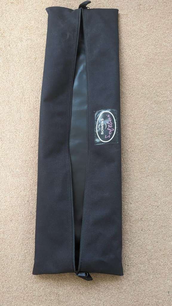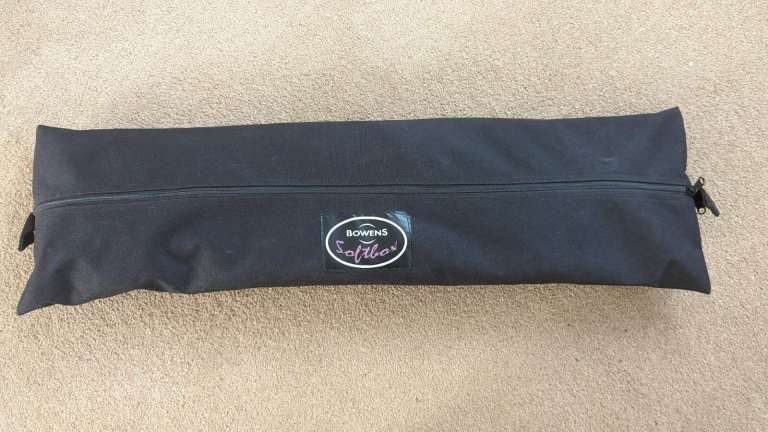 Soft carry case, main black/silver softbox, rods for edges, white cover.