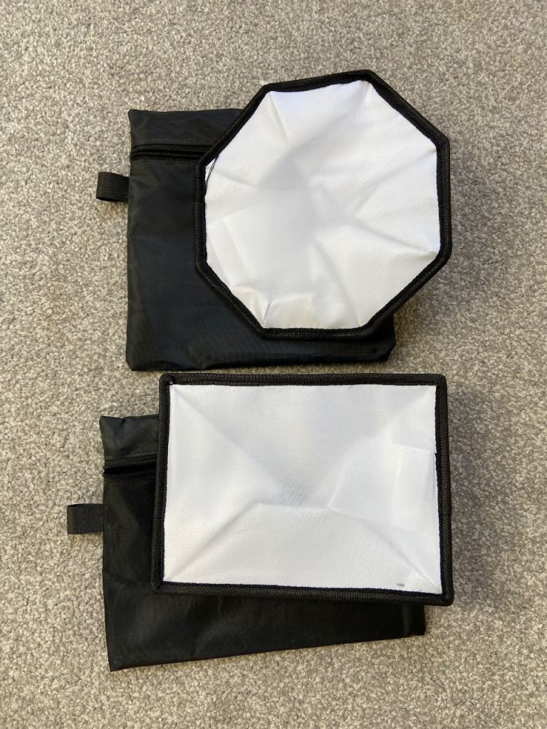 - 2 softboxes (rectangular + octagonal)