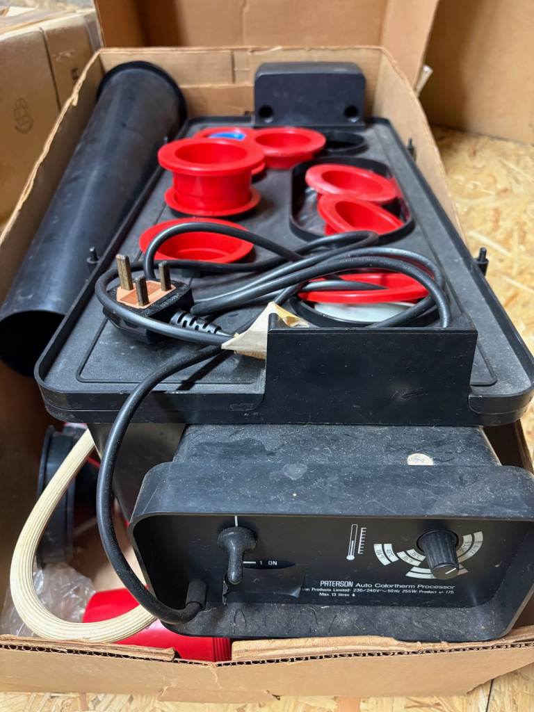This vintage developer, which has not been used for approx five years, comes complete with some instructions and various equipment used for develping both black & white and colour photographs.