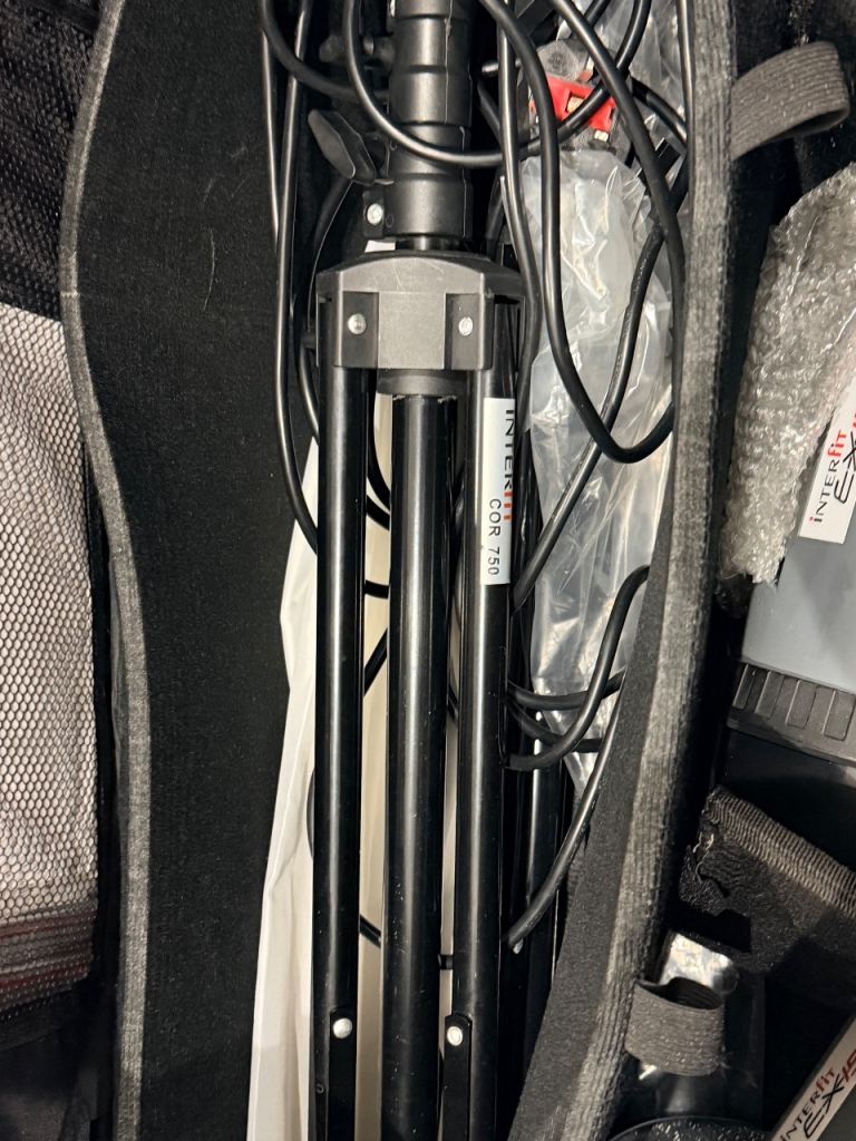 Includes Interfit EX150 flash heads, Interfit COR750 tripod light stands, softboxes and cables as shown in the photos. Everything pictured is included – nothing more, nothing less.
