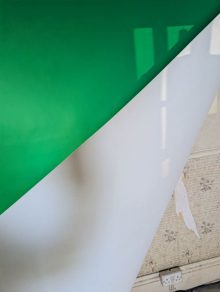 DOUBLE SIDED - One side is ULTRA MATT FADE-FREE GREEN VINYL for filming with no glare/reflection - the other side is WHITE for high resolution photography! IDEAL FOR ANYONE SETTING UP A STUDIO!