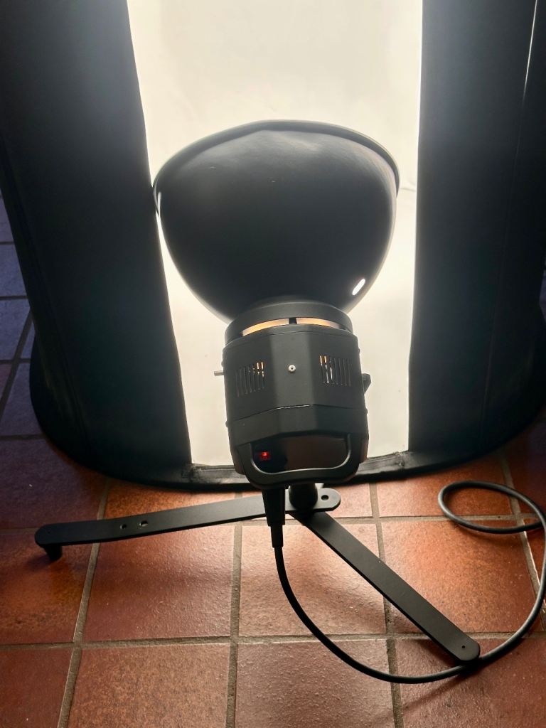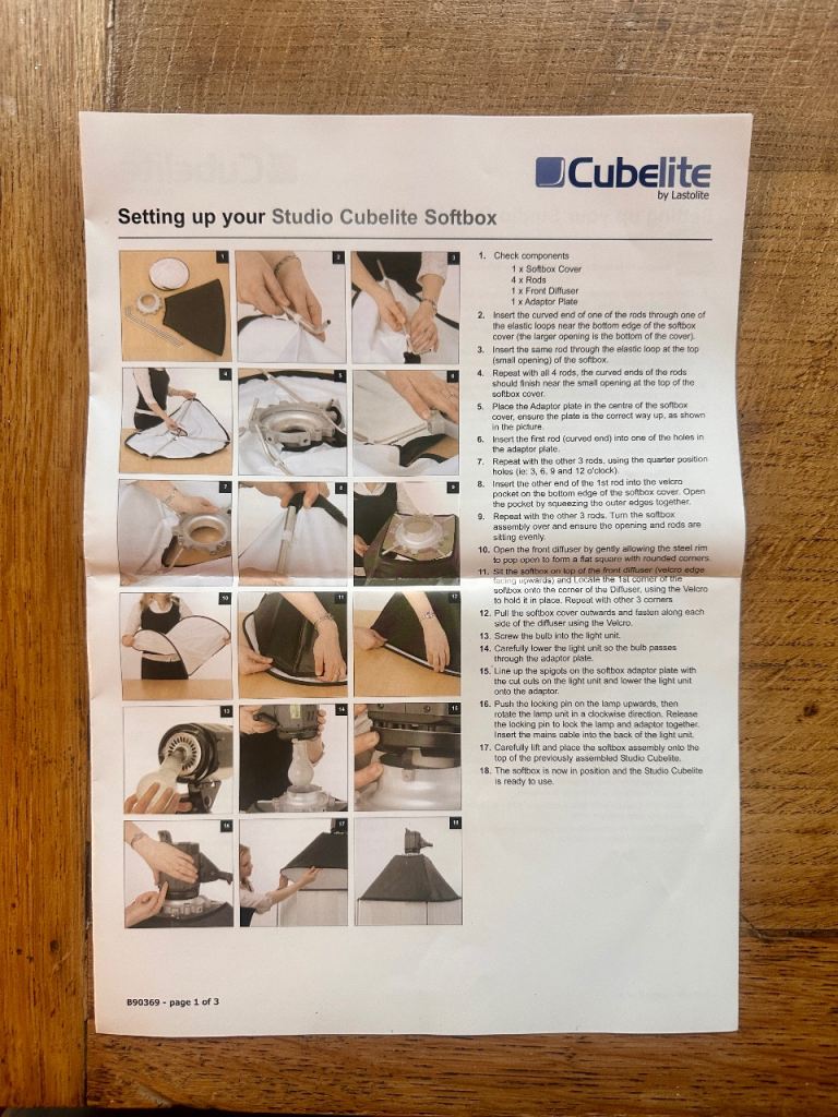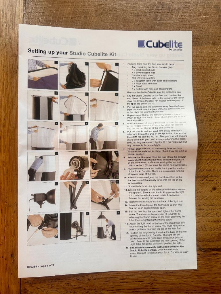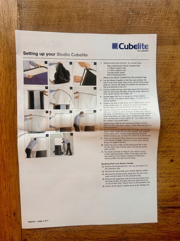 Complete studio light-tent kit for product photography. The 70 cm Cubelite gives even, shadow-free lighting and can be lit from multiple directions.