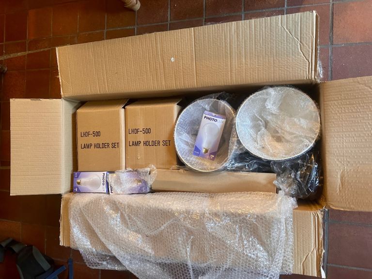 3 × 500 W P2/1 ES (E27) bulbs (2 fitted + 1 spare)