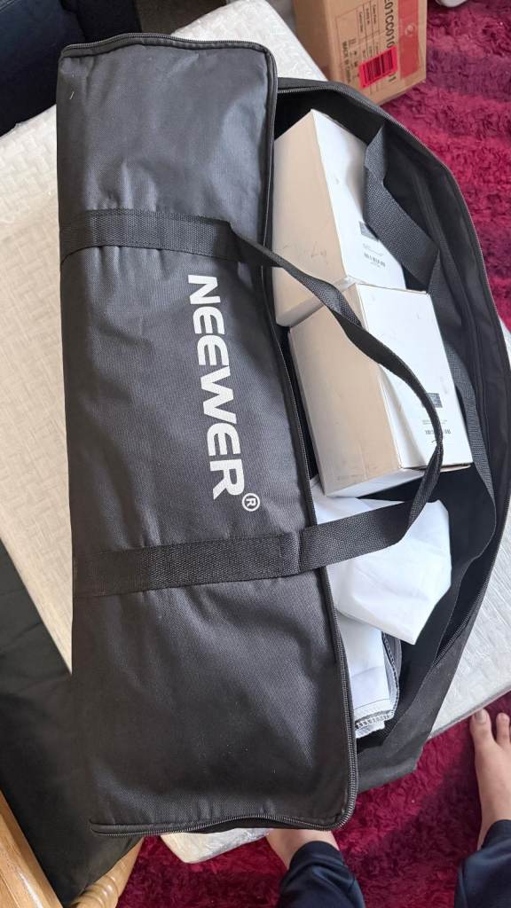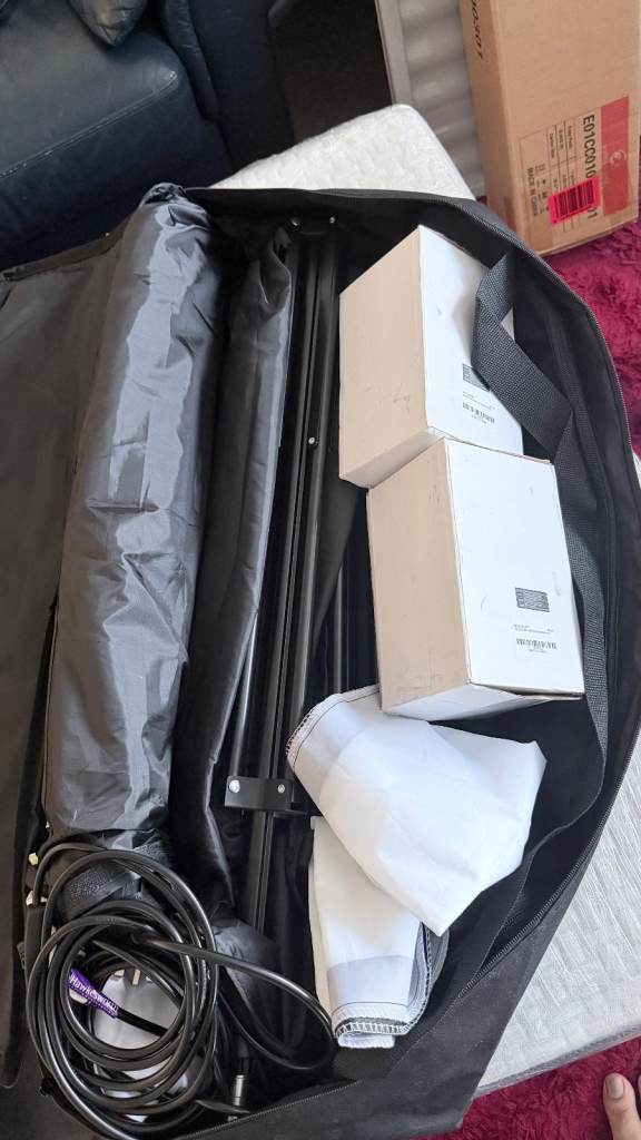 Complete set with stands, bulbs and carry bag – ideal for home studio or product shoots.