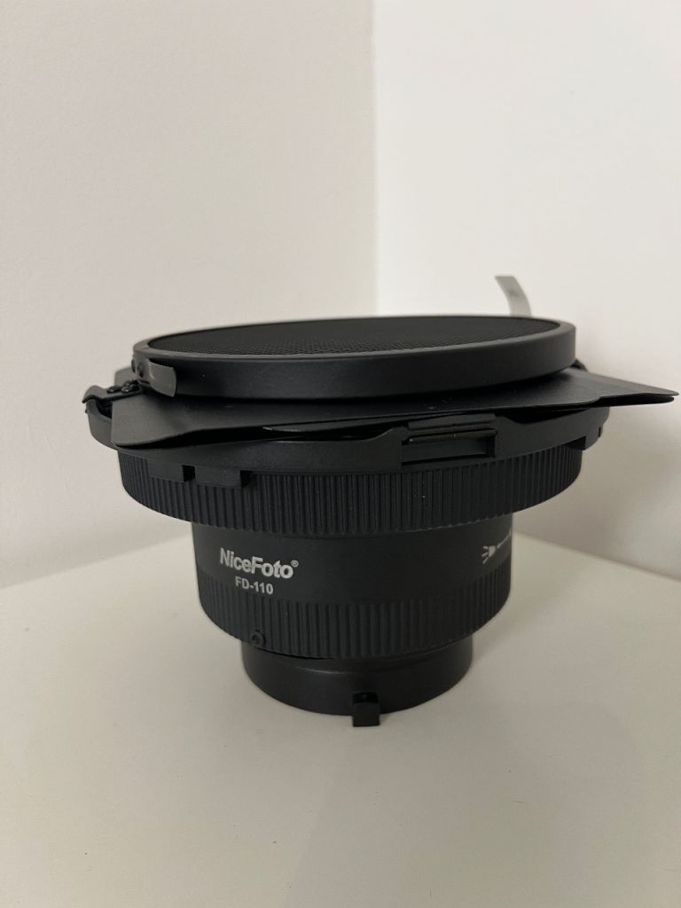NiceFoto FD-110 Fresnel focusing adapter for Bowens mount lights. Great for shaping and controlling a COB/LED light into a tighter beam (spot/flood style control).