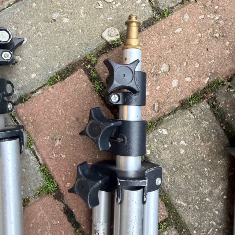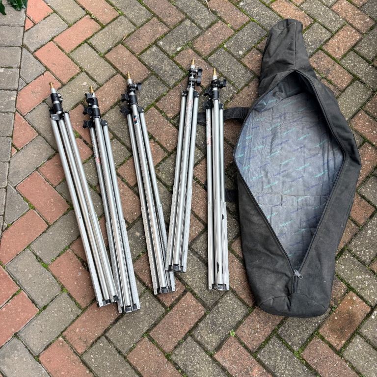 Set of aluminium lighting stands suitable for photography, video, studio or DJ lighting use.