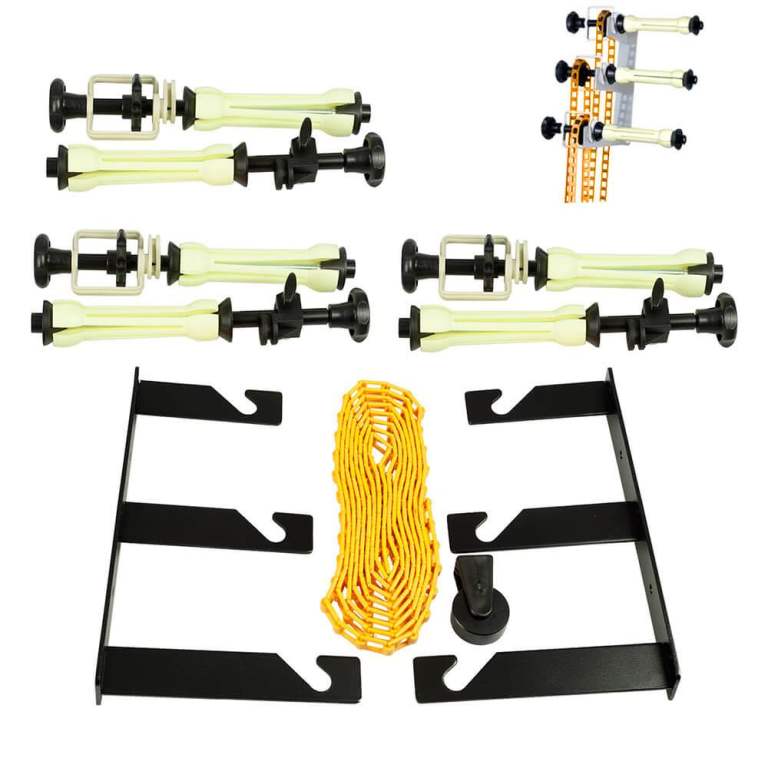The PixaPro Background Drive & Triple Holder Bracket Set is 3x sets of two adapters that allow you to attach a paper or vinyl backdrop for permanent studio use. Each drive system features a drive chain, allowing you to roll or unroll your backgrounds with ease, perfect during a busy shoot. The PixaPro Background Triple Hook Holder Bracket set features a pair of wall-mountable durable metal brackets, which can be used to hold three different backdrops at one time. This equipment is ideal for a busy studio environment that needs to change backgrounds quickly without issue.