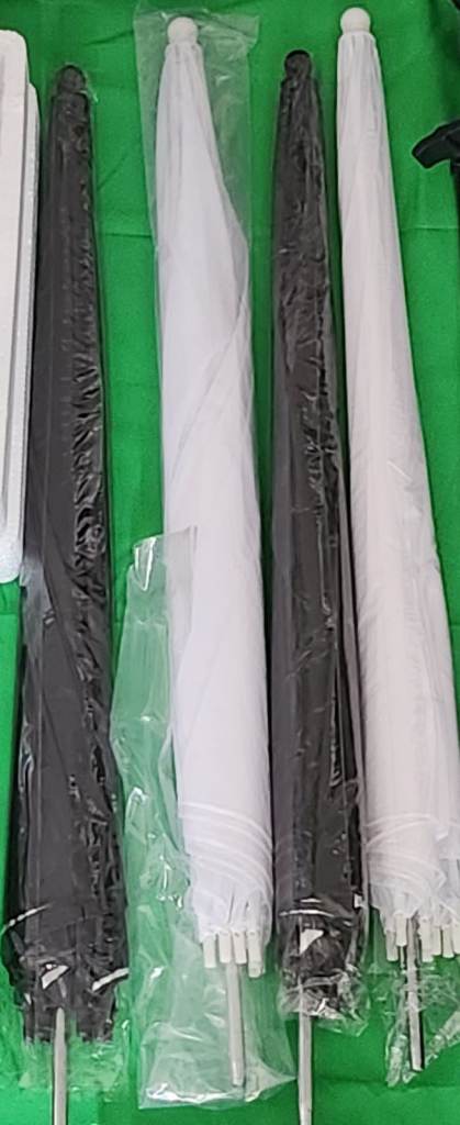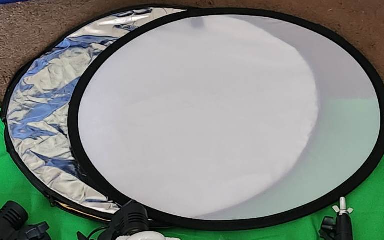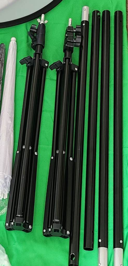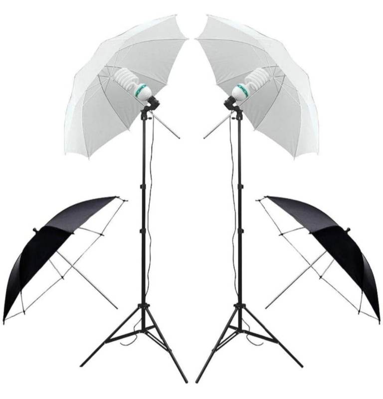 2x 33" Studio Translucent Shoot Through White Umbrella+2x 33” black&silver umbrellas | 2 x Single E27 socket with UK plug | 24” 5 in1 reflector ( gold, silver, white, black and transparent ) , to be used to reflect the light for shooting.