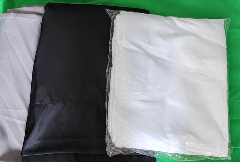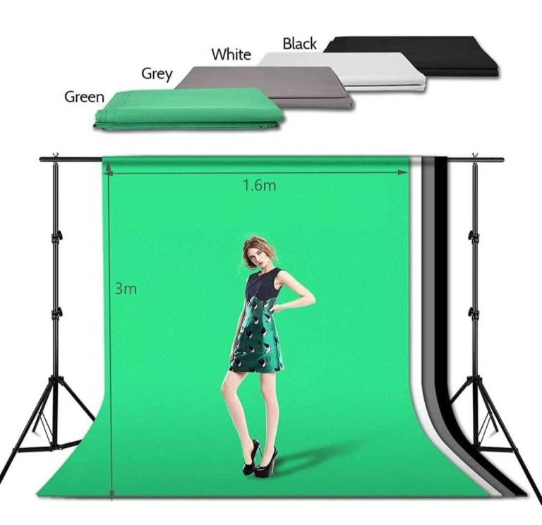 4x 1.6*3m Backdrops(Black White Green Gray) other seller just 3 ones , width:4.8ft * length:10ft, fit for 6ft*10ft backdrop stands, four clamps to tighten backdrops.