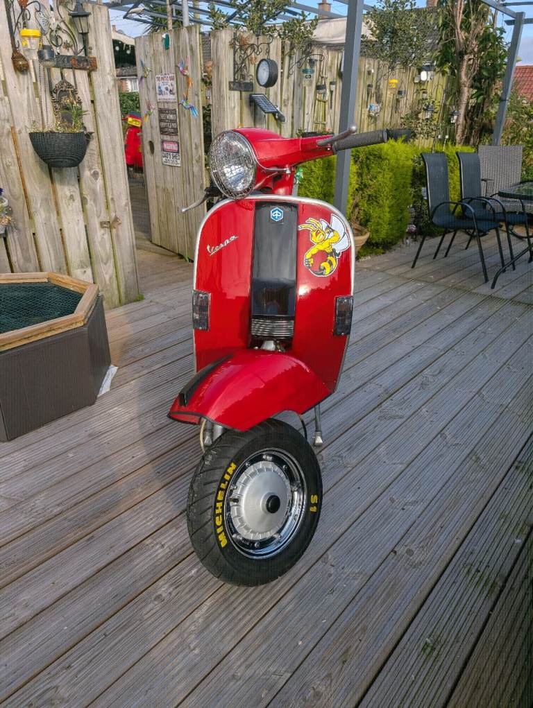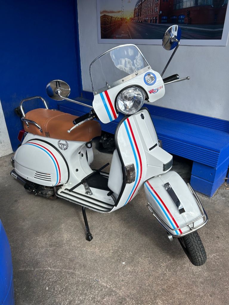 Here we have up for sale my Lml star 125 4T Manual scooter it’s basically the same scooter as a Vespa Px 124 that has very low mileage at 7369 miles from new as you can see from the pictures it’s a nice looking scooter with a few added extras including a nice Tasso exhaust new mitas tyres and smoked lenses runs & rides great & it’s got mot until Nov 2026Bargain at £1500 Ono
