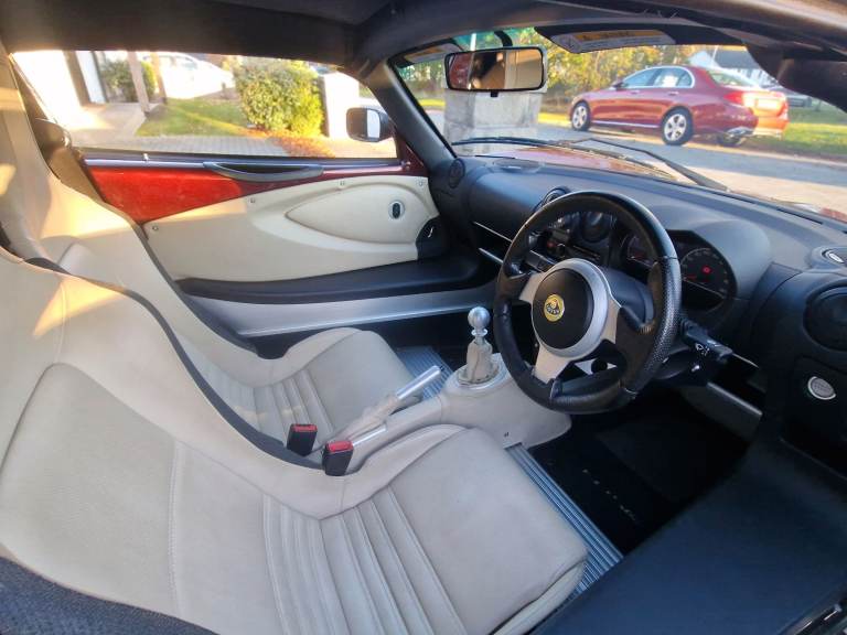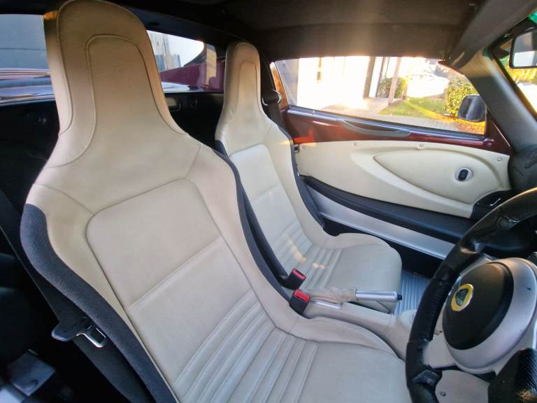 - Velvet Red Metallic with Cream Pro Bax Seats - Custom paint from the factory, believed to be the only Elise produced in this colour. It is a very deep rich shade with a shimmering metallic effect which changes appearance depending on the lighting. No photo does it justice, really comes to life when seen in person on a sunny day.