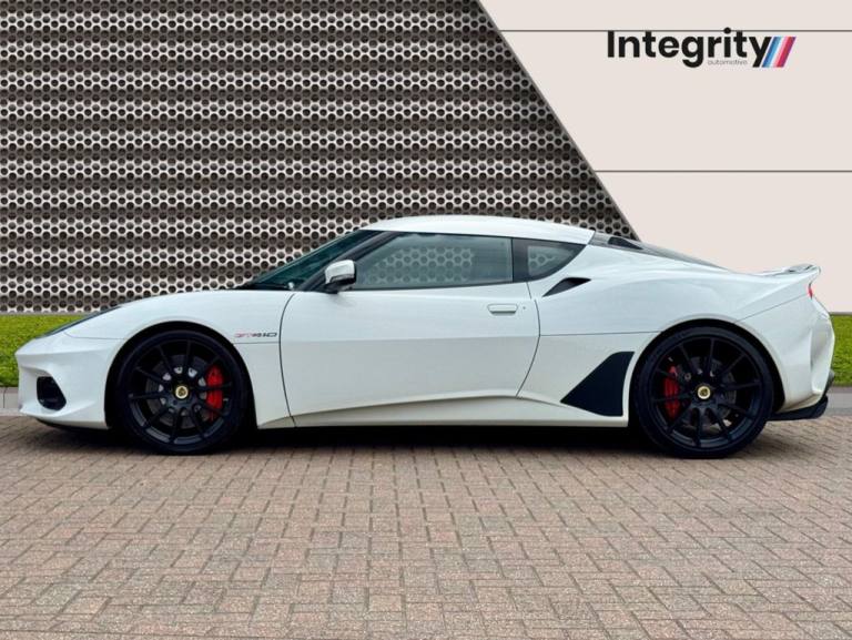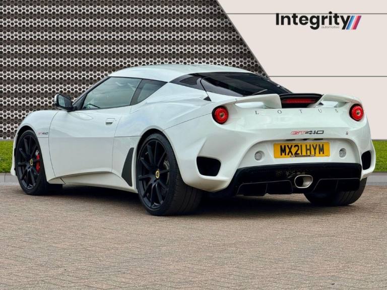 At Integrity Automotive, we are proud to present this stunning 2021 Lotus Evora 3.5 V6 GT410, finished in timeless White with a Black Alcantara interior accented by Red stitching. With just 5,081 miles and a full Lotus service history — the most recent carried out in August 2024 at 4,578 miles — this low-mileage example is a truly rare opportunity to own one of the last of its kind. The Evora GT410 is a car that embodies the very essence of Lotus: light weight, pure handling, and race-inspired engineering. Powered by a 3.5-litre supercharged V6, it produces exhilarating performance with a soundtrack enhanced by the Titanium Exhaust Finisher. As Evo Magazine praised, "the Evora GT410 offers one of the most engaging driving experiences on sale today, combining incredible agility with genuine long-distance comfort." Similarly, Top Gear noted, "the Evora feels alive, with steering and chassis balance that few cars at any price can match." Inside, the cabin blends motorsport focus with everyday usability. The Alcantara-trimmed interior with red contrast stitching gives a premium yet purposeful feel, while equipment such as heated seats, cruise control, and a premium sound system with subwoofer and amplifier ensures comfort is never compromised. With its rare 2+2 seating configuration and Isofix rear seats, this Evora is one of the few true performance cars that can be used practically with the family. The GT410 isnt just about performance — its also a car that turns every drive into an event. As Autocar put it, "the Evora GT410 proves that Lotus still builds sports cars that connect with the driver in a way few others can." Whether on a winding B-road or a motorway cruise, this Evora offers a driving purity that makes it stand out from anything else in its class. With its low mileage, impeccable Lotus service history, and outstanding specification, this Lotus Evora 3.5 V6 GT410 represents a rare chance to own a true modern classic — a car that blends everyday usability with the raw driving thrill that only a Lotus can deliver..12V Wet Battery, 19in Front - 20in Rear Alloy Wheels - Black GT430 Forged, 19in Front and 20in Rear Alloy Wheels - Silver Lightweight Forged 10-Spoke, 2+0 Seating Configuration, 2+2 Seat Configuration with Isofix in Rear, ABS - Anti Lock Brakes, Air Conditioning, Alcantara - Black with Red-White Stitching, Alcantara Steering Wheel - Black, AP-Racing Four-Piston Red Calipers, Black Carpet, Black Centre Spoiler, Black Leather Gear Lever Gaiter, Body Coloured Interior Pack, Body Coloured Mirror Caps, Body Coloured Side Sills, Carbon Fibre Front Access Panel, Carbon Fibre Louvred Tailgate, Central Door Locking, Charcoal Cloth and Ebony Black Leather Door Cards with Integrated Armrests and Stowage Bins, Charcoal Cloth-Ebony Black Leather-Leatherette Sparco Sports Seats with Black Stitching and Lotus Roundel, Cruise Control, Driver and Passenger Airbags, Electric Front Windows, Face-Level Air Vents, Front Mud Flaps, GFRP Roof Panel, Gloss Black Exterior Colour Pack, Grey Cloth Sun-Visors, Gunmetal Interior Colour Pack, Heated Seats, Immobiliser and Remote Activated Alarm, Michelin Pilot Sport 4S Tyres, Polished Aluminium Gear Knob, Power Steering, Premium Infotainment System featuring Navigation - DAB Radio - Apple CarPlay with 4 Speakers, Rear Parking Sensors, Reversing Camera, Roof Lining - Grey Cloth, Sound Insulation Pack, Subwoofer and Amplifier, Titanium Exhaust Finisher, Touring Suspension Setup - Evora 400 Configuration, White