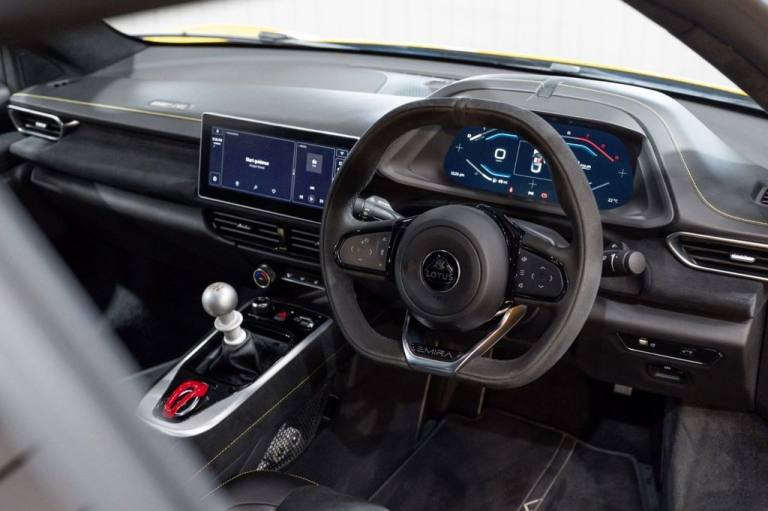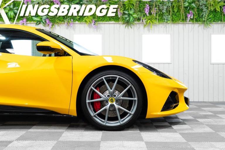 Stunning and rare in this sought-after colour combination of Hethel Yellow over Black alcantara interior with matching yellow stitching and contrasting Red brake calipers and 20" ultra light weight silver alloy wheels. Gloss black lower exterior pack. Is this the perfect spec? It is in our eyes! Lotus Emira 3.5 V6 first edition 400bhp with the correct manual gearbox. - 1 Private Owner (This was originally a demo car at Hendy Lotus Southampton) (Please note that any spec listed cannot be relied upon) Features: Immobiliser, Keyless Start, DAB Digital radio, KEF premium branded 10 channel audo (340w), USB port, 3 point seatbelts, Branded brake calipers, EBA, Two piece brake discs, Tyre pressure monitoring system, 12 way electrically adjustable front seats with drivers memory function, 12V Accessory socket, Centre console armrest, Cup holders, Front head restraints, Heated seats, Height/reach adjustable steering column, Illuminated passenger vanity mirror, Open gear change mechanism with mesh grille, Premium black Lotus branded driver and passenger footwell over mats, Satin chrome interior trim finishers, Single front passenger seat, Single zone air conditioning, Stowage - door bin, glovebox, centre console, White ambient lighting, Automatic lights, Daytime running lights, Door mirror memory, First Edition badges, LED headlamps, Lotus sill kick plates, Metallic paint, Power folding and heated door mirrors, Rear boot, Rear LED lights, Third brake light, Welcome home lighting, 10.25" touchscreen MMI, 12.3" TFT supervision cluster display, Apple car play/Android Auto, Bluetooth system, Cruise control, Drive mode selector, eCall emergency call system, Embedded navigation system, Hydraulic PAS, Rear parking sensors, Limited slip differential, Convenience pack - Emira, Lotus drivers pack - Emira, Lower black pack - Emira .Alcantara - Black with Yellow Stitching, Hethel Yellow, Black Alcantara Steering Wheel, Red Brake Calipers, 20in Alloy Wheels - Ultra Lightweight V-Spoke Forged - Silver, 10.25in Touch Screen - MMI, 12-Way Adjustable Seat including 2 Memory Function Seat and Mirror, 12.3in TFT Instrument Cluster, 12v Socket, 20in Alloy Wheels - Ultra Lightweight V-Spoke Forged - Diamond Cut, ABS - Anti Lock Brakes, Aero Design Flush Door Handles, Air Conditioning - Single Zone, Ambient Mood Lighting - White, Armrest, Artificial Exhaust Sound Generation - Cabin Sound, Auto Lights, Black Brake Calipers, Black Leather Steering Wheel - Black Stitching, Black Premium Lotus Branded Driver and Passenger Footwell Over Mats, Bluetooth, Branded Brake Calipers, Convenience Pack, Cruise Control, Cup Holders, DAB Radio, Daytime Running Lights, Driver and Passenger Airbags, EBA - Electronic Brake Assistance, Electric Front Windows, Electric Park Brake, First Edition Badges, Heated Seats, Hydraulic Power Assisted Steering, Illuminated Vanity Mirror - Passenger, KEF Premium Branded 10 Channel Audio - 340W - Apple Carplay - Android Auto, Keyless Start, LED Headlamps, LED Rear Lights, Lotus Branded Sill Kick Plates, Lotus Design Pack, Lotus Drivers Pack, Lower Black Pack, Open Manual Gearchange Mechanism with Mesh Grille, Powerfold and Heated Door Mirrors, Rear Parking Sensors, Satellite Navigation, Satin Chrome Interior Trim Finishers, Selectable Drive Modes, Steering Column with Manual Reach and Height Adjust, Storage Net in Rear Luggage Compartment and Passenger Footwell, Stowage - Door Bin and Glovebox Centre Console, TPMS - Tyre Pressure Monitoring System, Titanium Exhaust Finisher, USB, Welcome Home Lighting, Tour Suspension W- Goodyear Eagle F1 Supersport