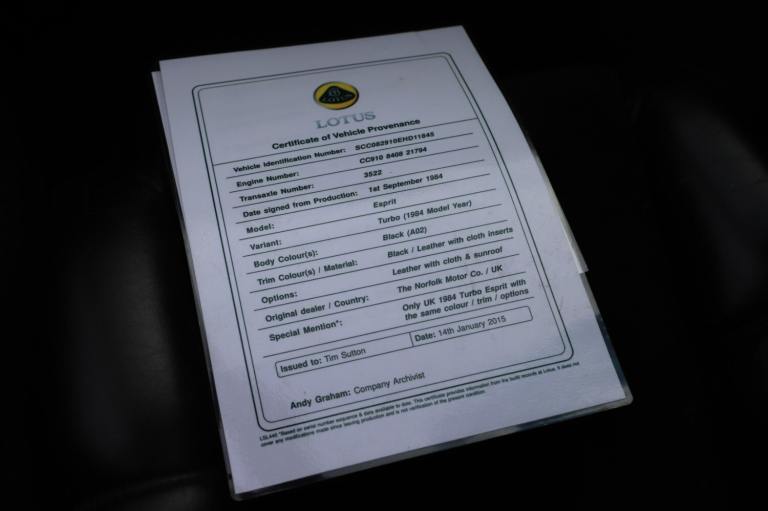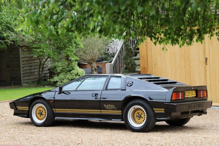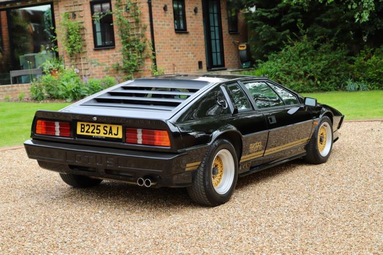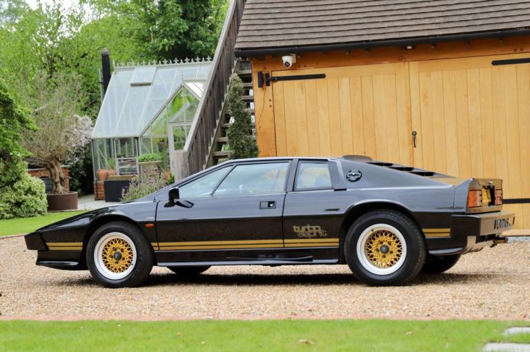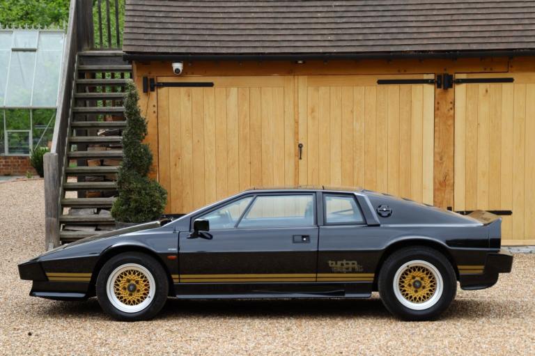 Lotus Esprit Turbo, 1984. Stunning black with the iconic gold livery. Half black leather and cloth inserts. Glass sunroof. Complete engine rebuild by Chris Foulds top Lotus Specialists in conjunction with Watson Engineering using new pistons and liners, new valves and valve seats and new exhaust manifold etc. etc. Rebuilt carbs and so much more. Work completed in 2022 and just 4,000 miles ago so the engine is just run-in. Replacement turbocharger, both fuel tanks replaced. Massive history file going back over 35 years. Certificate of Provenance and Letter of Authenticity from the factory archives. Comes with a fresh service and 12 months MOT. Original Owners handbook and wallet from the supplying dealers Norfolk Motor Company. Delivery worldwide can be arranged.